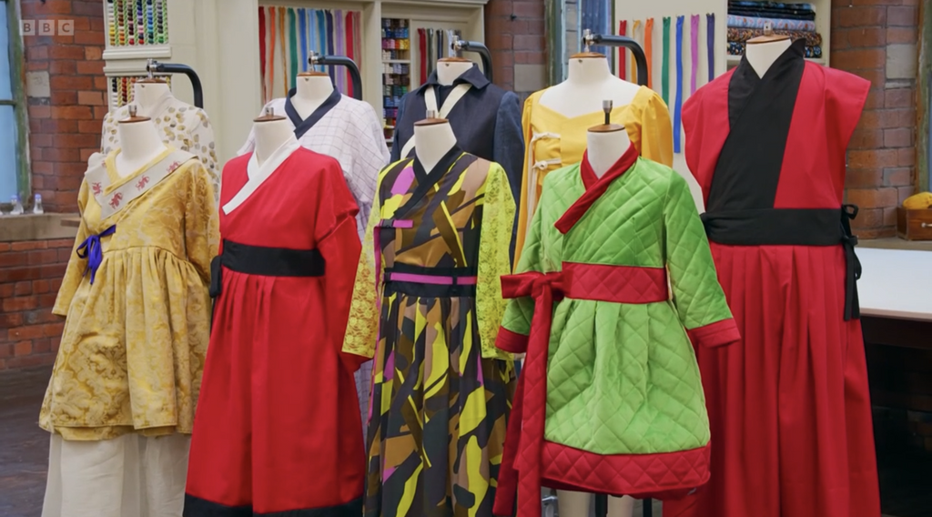 Traditional and historic garments like these have been passed down through the generations and reinterpreted for styles of garments to suit all occasions from everyday wear to occasion wear. The contestants come up with some beautiful co-ordinating fabric choices of lightweight linen and cotton to produce their Jeogori's.