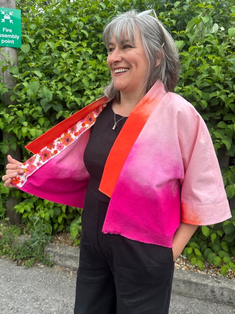 Check out Claudia's cropped Riva Jacket using our Cotton Mystery Box fabric from August's Fabric of the Month!
