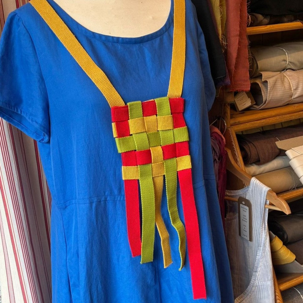 ✂️ For projects inspired by this challenge, try combining structured weaves like twill, denim, or brushed cotton with colourful trims for belts or sashes. We stock colour-pop deadstock zips and woven trims and braids that would work brilliantly.