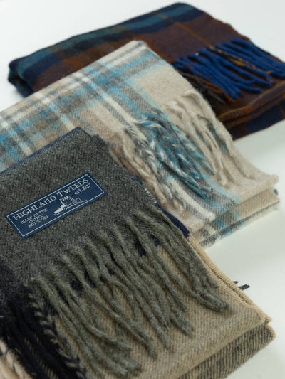 From these partnerships, we carefully source surplus and end-of-line fabrics and, as the colder months arrive, a curated selection of luxurious scarves, stoles, and throws. Each piece is selected with the same care as our signature fabrics, ensuring exceptional quality while making thoughtful use of surplus production. The result is British-made wool accessories that are as exclusive as they are beautifully crafted.