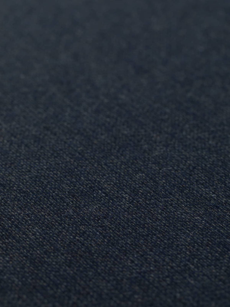 Close-up of Navy Zenith’s finely woven texture, showcasing the subtle honeycomb-like weave and dark navy color. The fabric's tightly twisted yarns create a slightly textured, non-irritant surface with a beautiful fluid drape. It is ideal for crafting smart suits, wide-leg trousers, waistcoats, and classic shirt dresses with a timeless appeal.