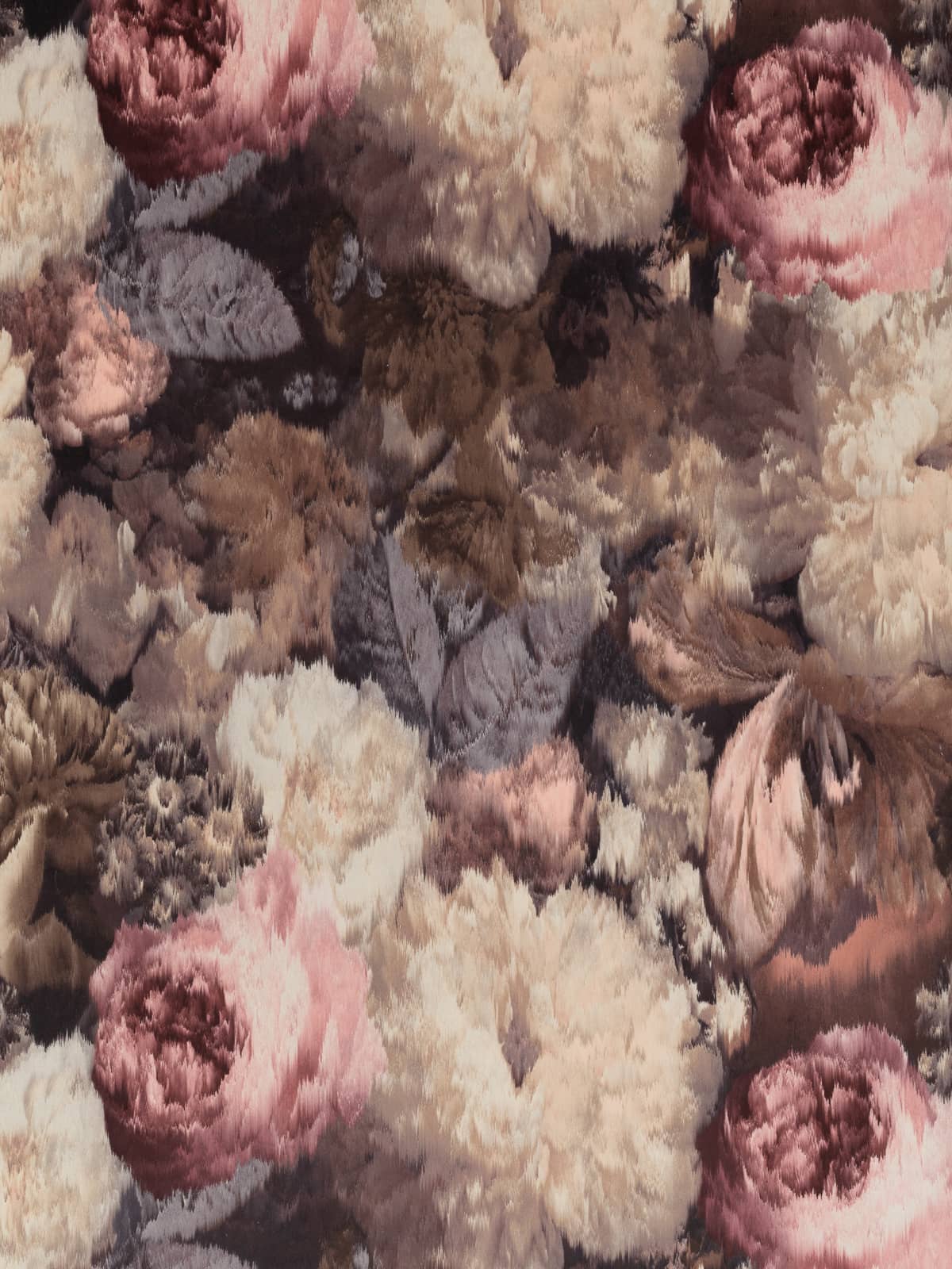 Artistic Botanical Haze (Vintage Boudoir) is a maximalist design, packed with an exuberance of frothy antique-style florals in a painterly yet obscured (almost dry brushed or scumbled-smudged) style.