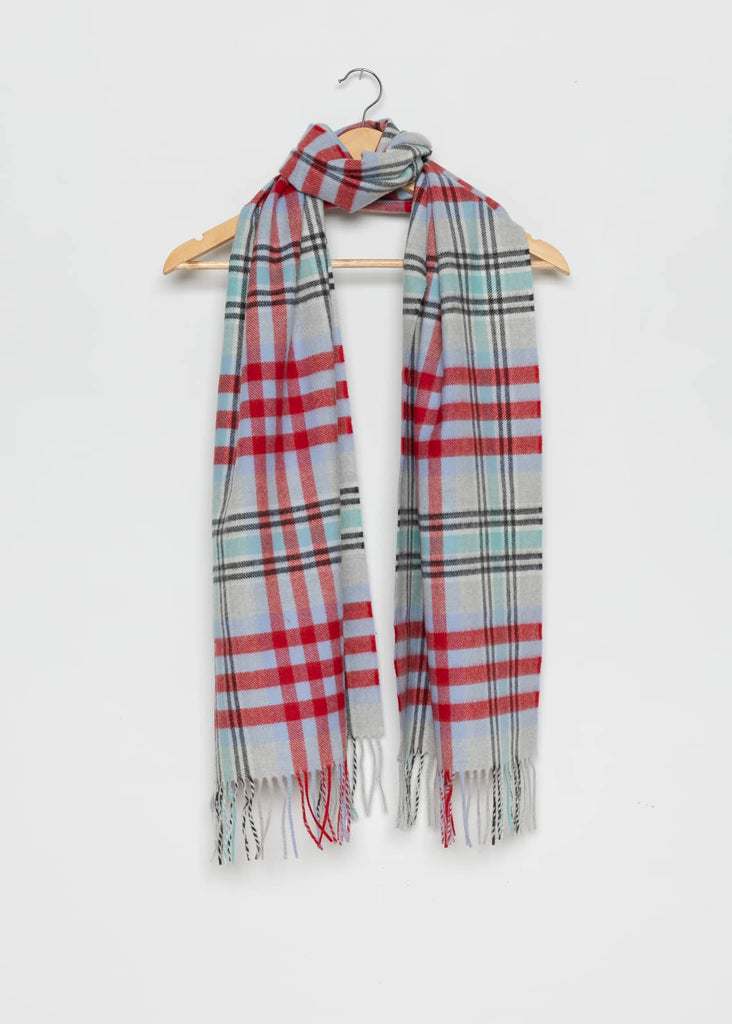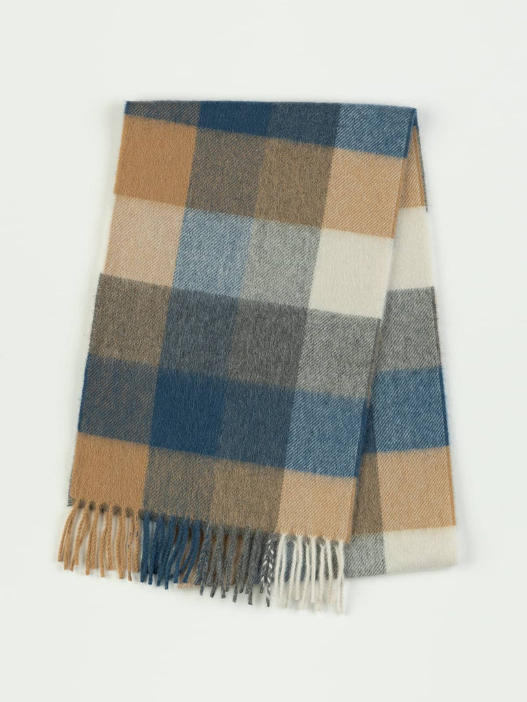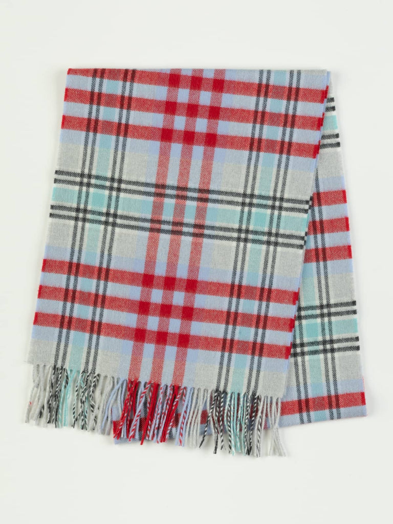 Large Pure Cashmere Scarf - Winter Sky Plaid