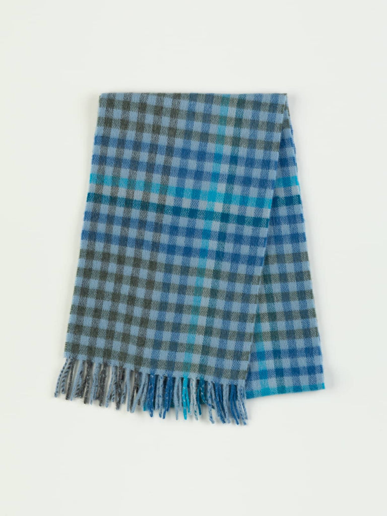 Pure Cashmere Scarf - Sapphire Pinch Check