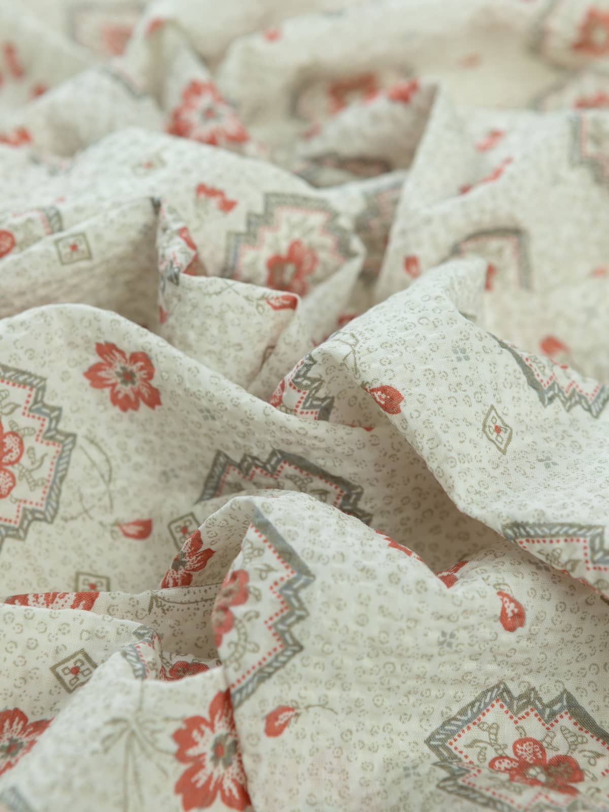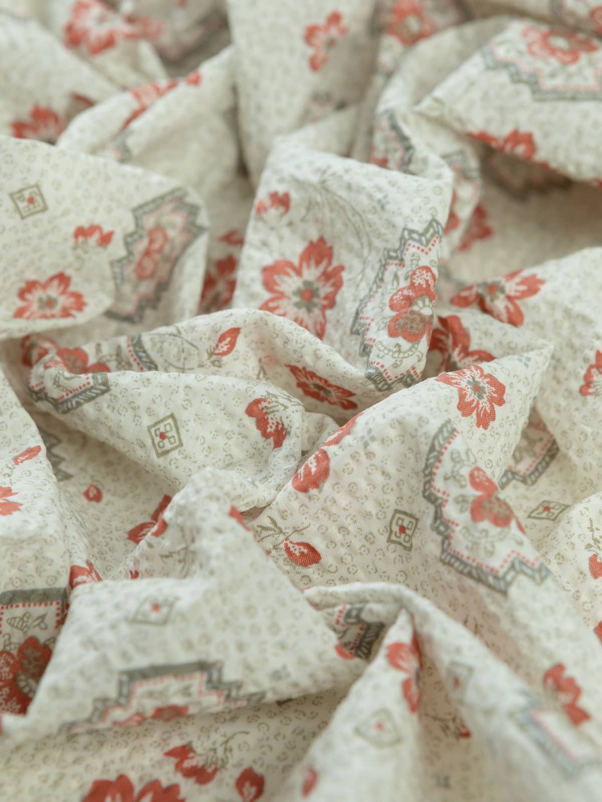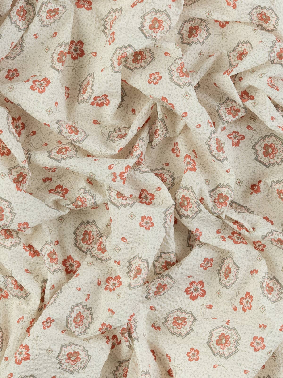 100% Cotton Seersucker - Floral Vintage Tile