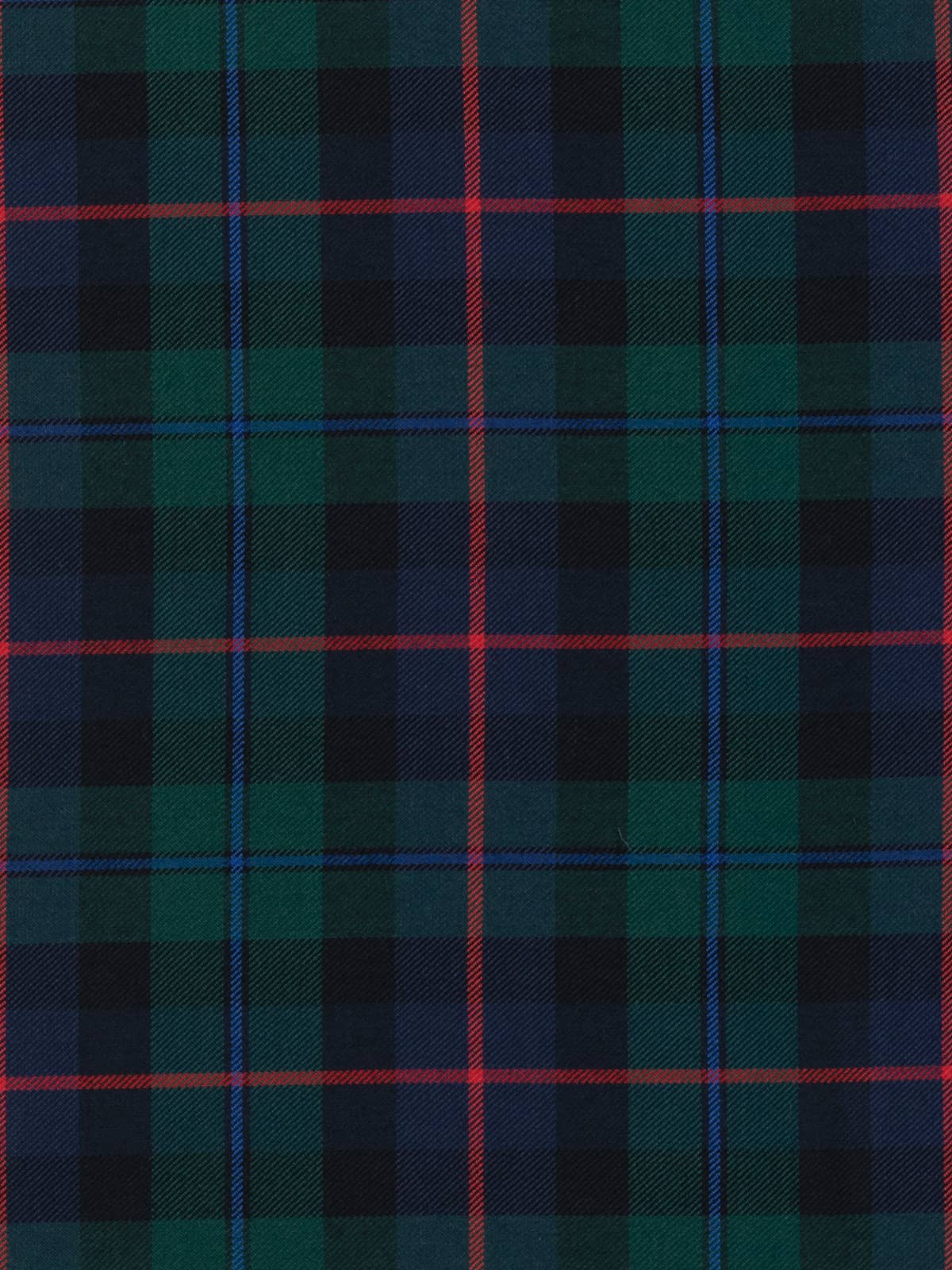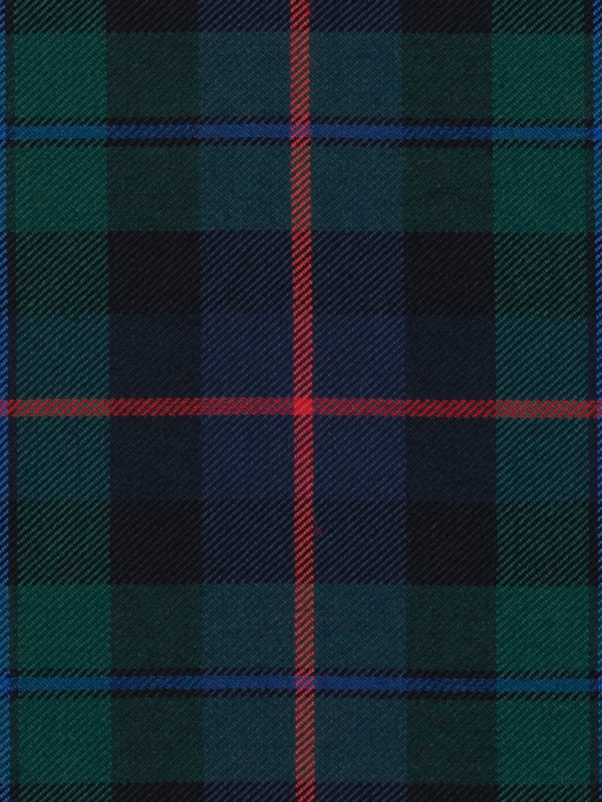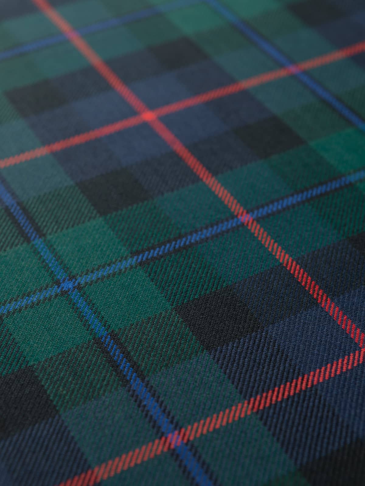 Design: A modern interpretation of the historic Campbell of Cawdor sett, structured around alternating green and navy blocks framed by darker bands. The defining red central stripe gives the pattern a distinctive rhythm, while the blue overline softens transitions within the dark fields. This layout reflects the established Cawdor version, known for its clearer contrast and more colourful accents than the darker Campbell of Argyll patterns.