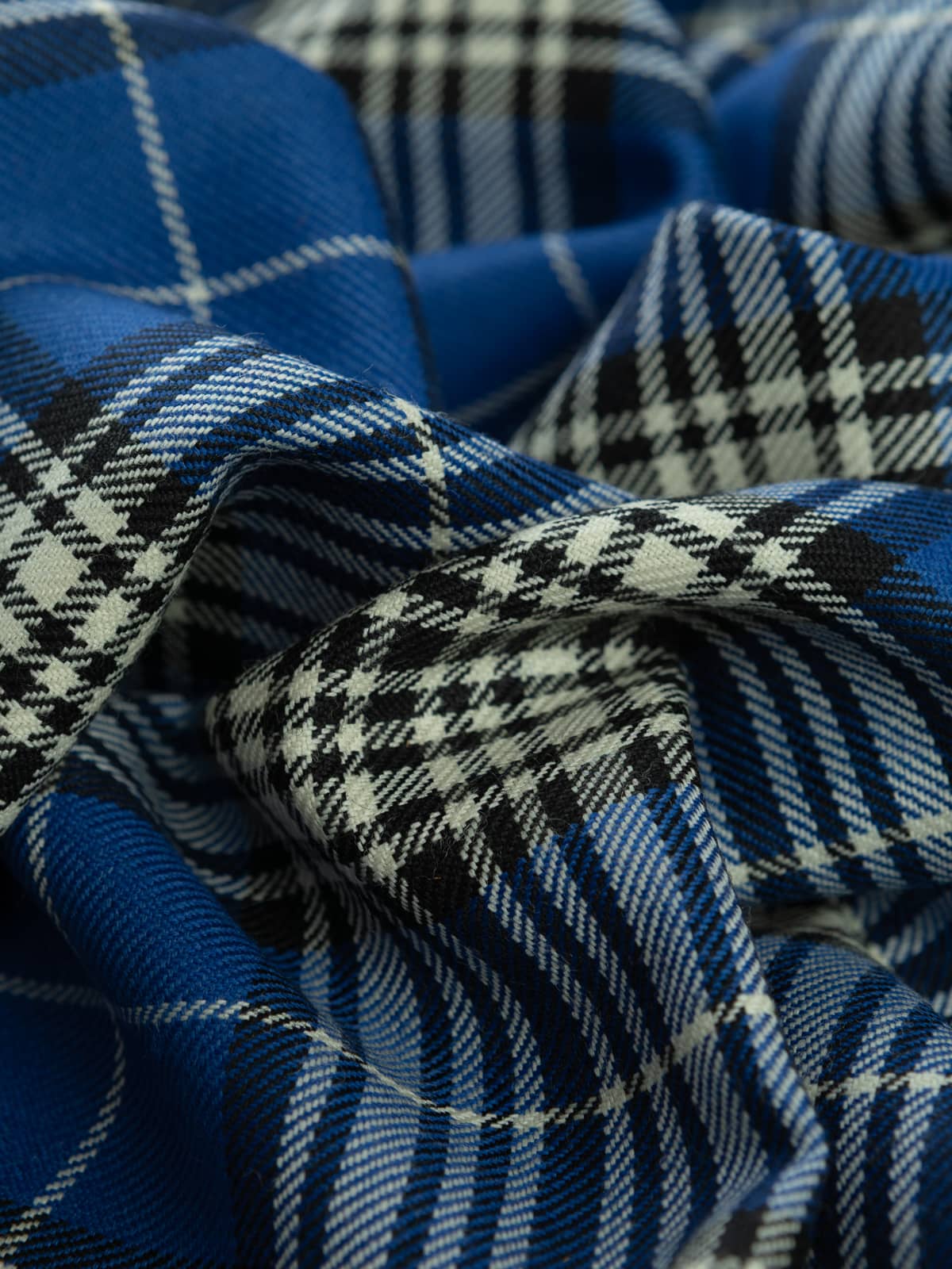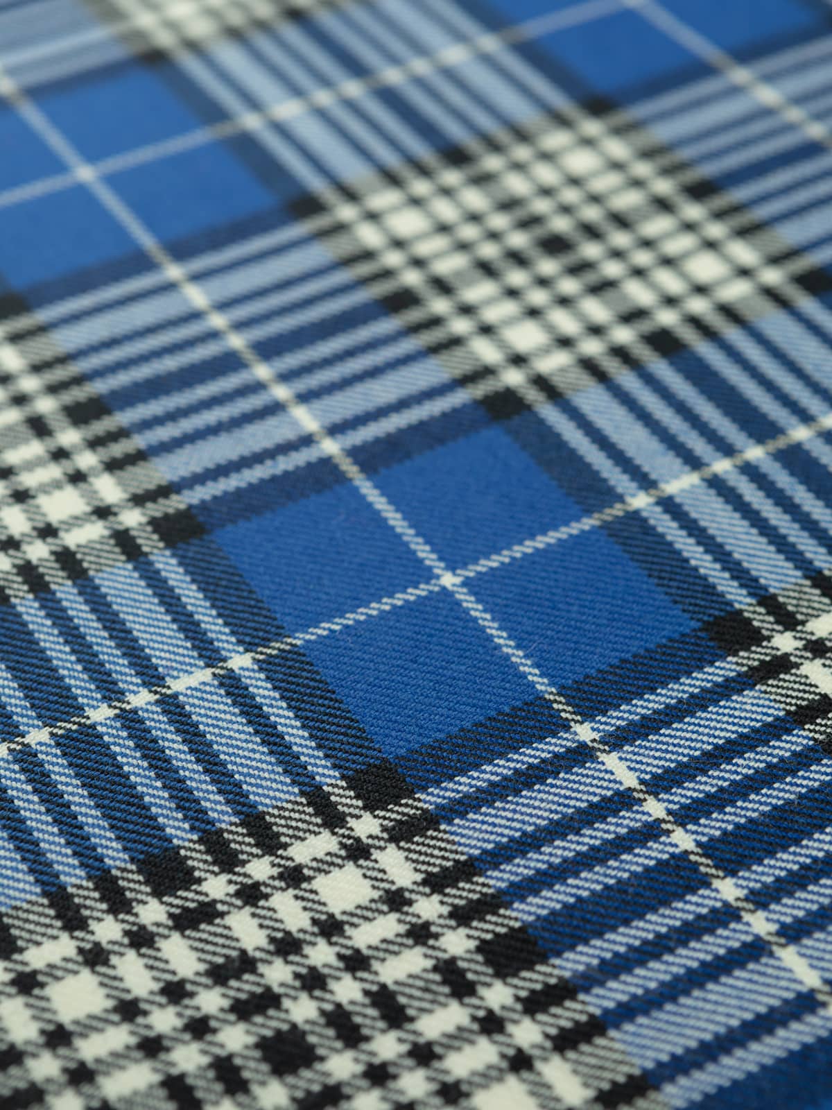 Overall: A striking tartan that pairs bold blue with a classic black‑and‑white check, producing a fresh, contemporary appearance while retaining traditional sett discipline. Napier works well for kilts, tailoring and accessories where a modern yet heritage‑aligned tartan is desired.