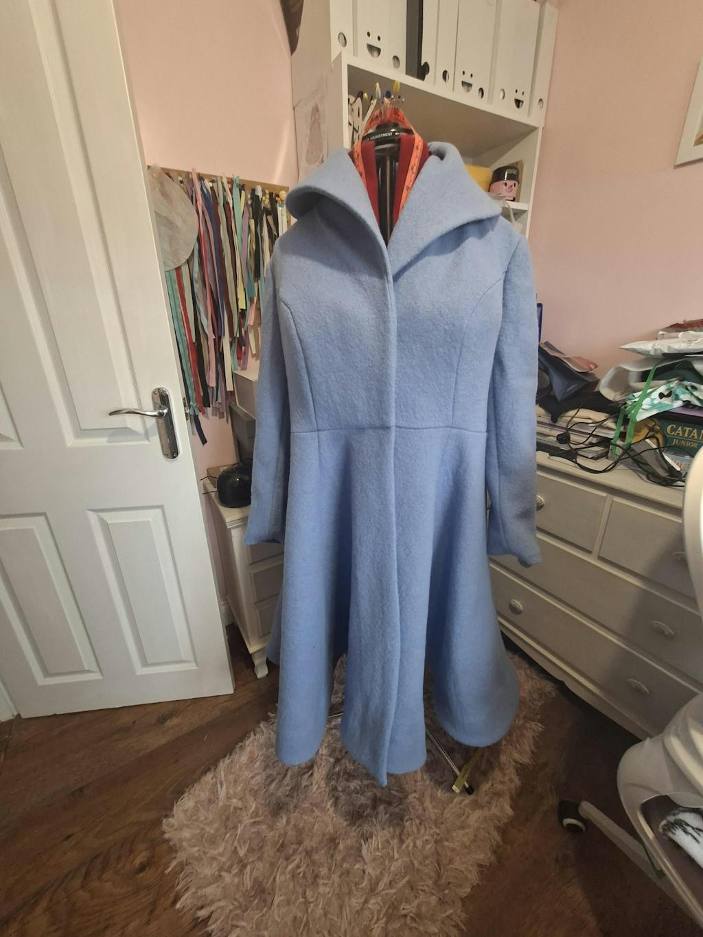 Waterfall front coatigans, wraps, ponchos and capes are enough for beginner sewists, using this versatile fabric. Customise yours with needle-felted or embroidered pockets or add a fancy trim to the edges. Simple contrasting wool yarn blanket stitching looks great on boiled wool fabric edges.