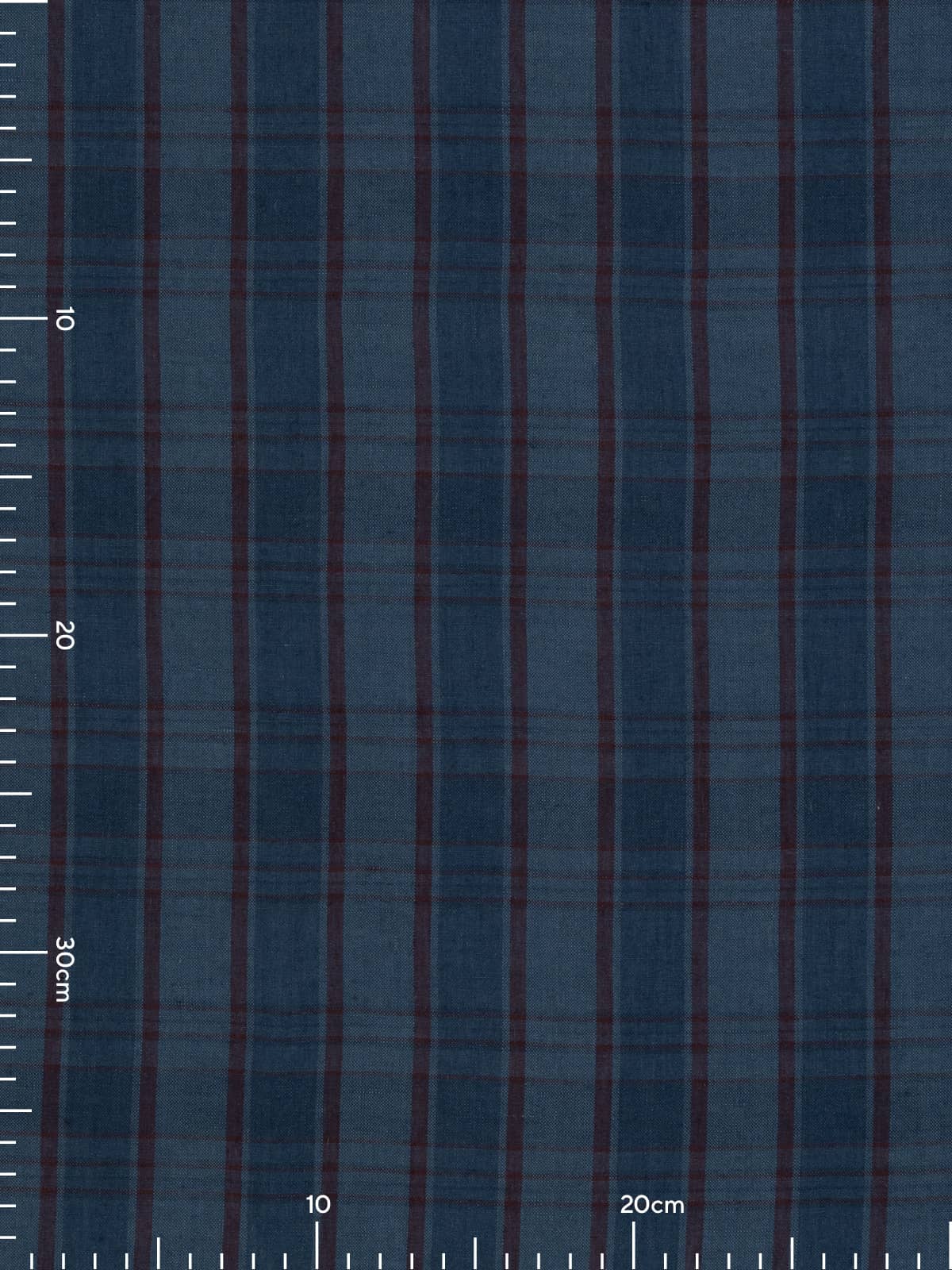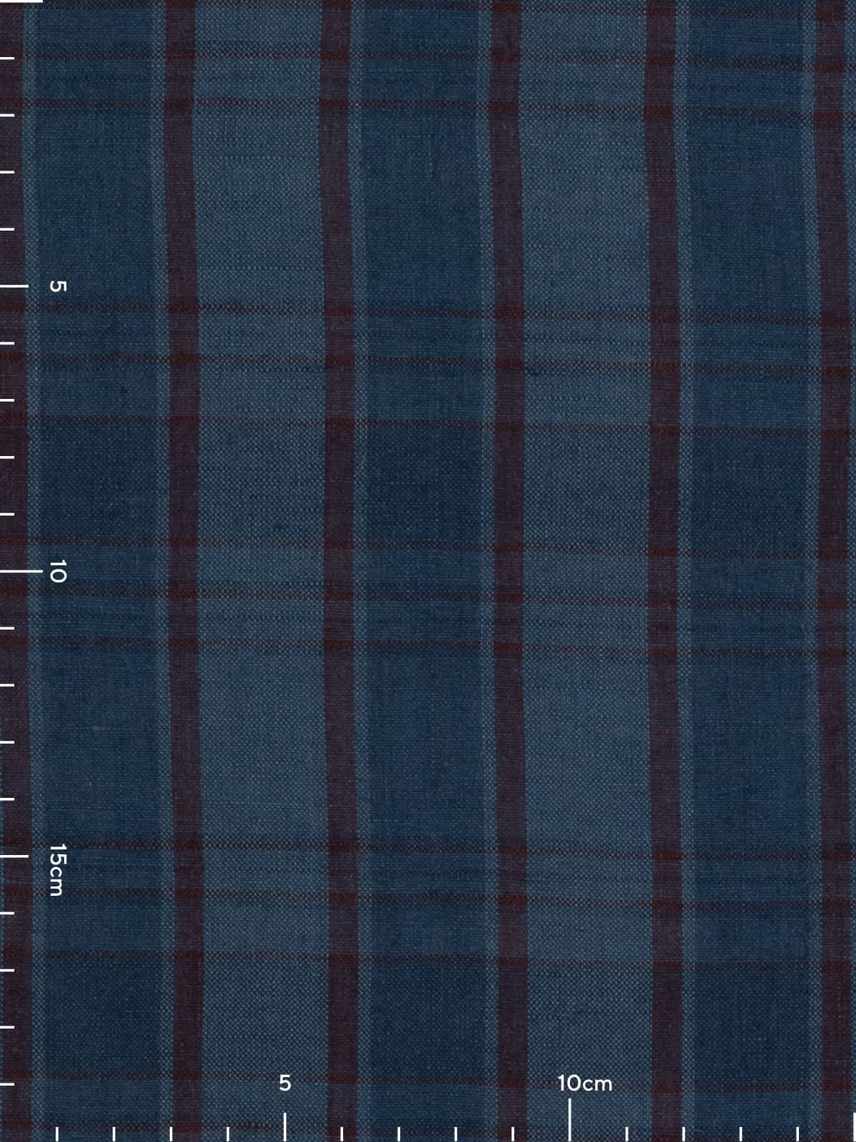 Shades: This dress and shirt-weight, Crisp 100% Linen Check features a pleasing, layered colour story that feels elegant and refined. Intersecting bands of dark and mid-indigo blue form a balanced, medium-scale check, elevated by a deep, sophisticated merlot overcheck that adds richness and contrast.