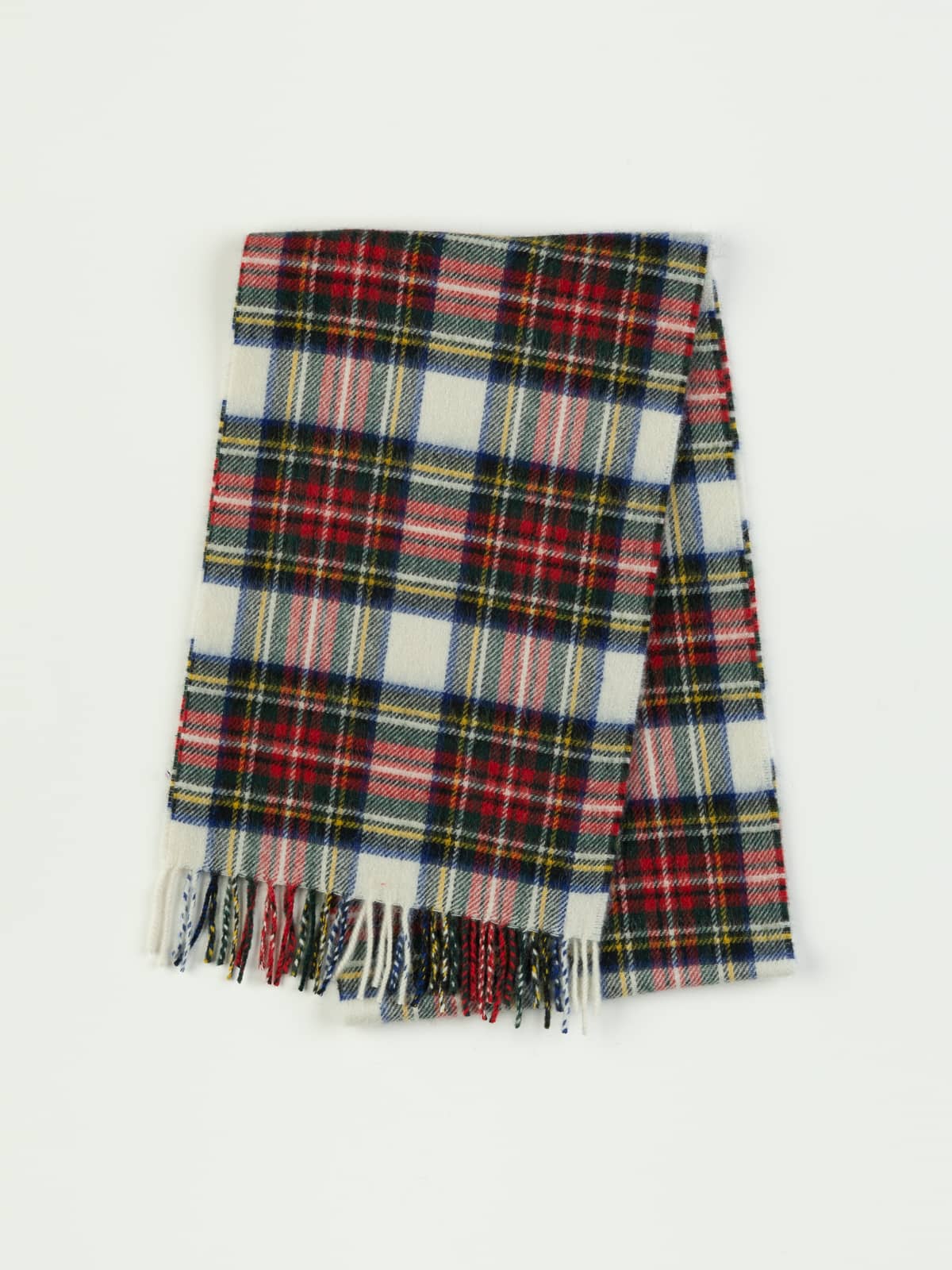Winter white provides a fresh, bright base for the Dress Stewart pattern, with red, blue, green, gold, black, and white completing the classic grid. Lighter and more elegant than traditional Stewart, it’s sophisticated yet spirited. Works beautifully with cream outerwear or deep wool coats.