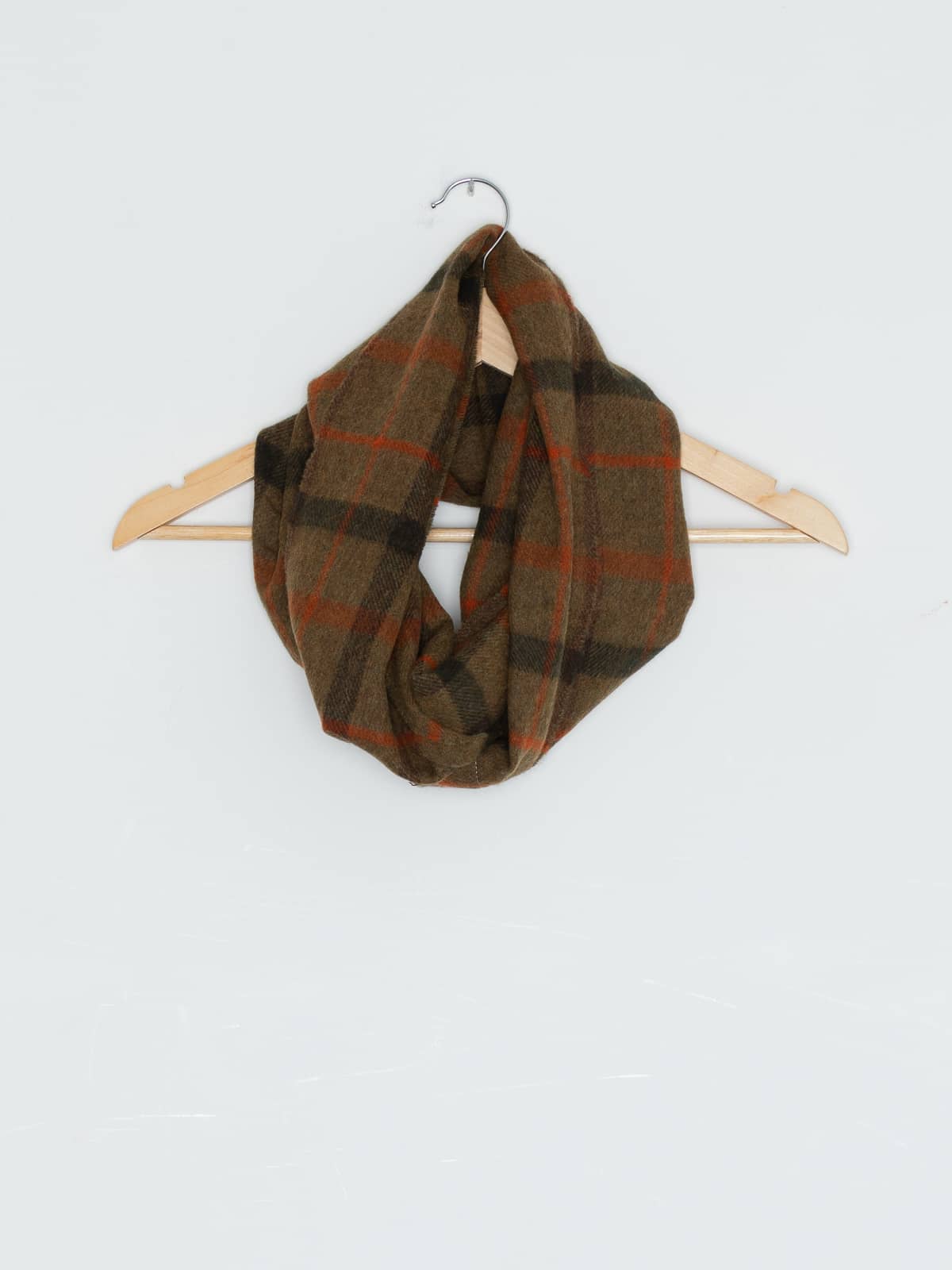 Pure Merino Wool Infinity Scarf - Forest Campfire Check