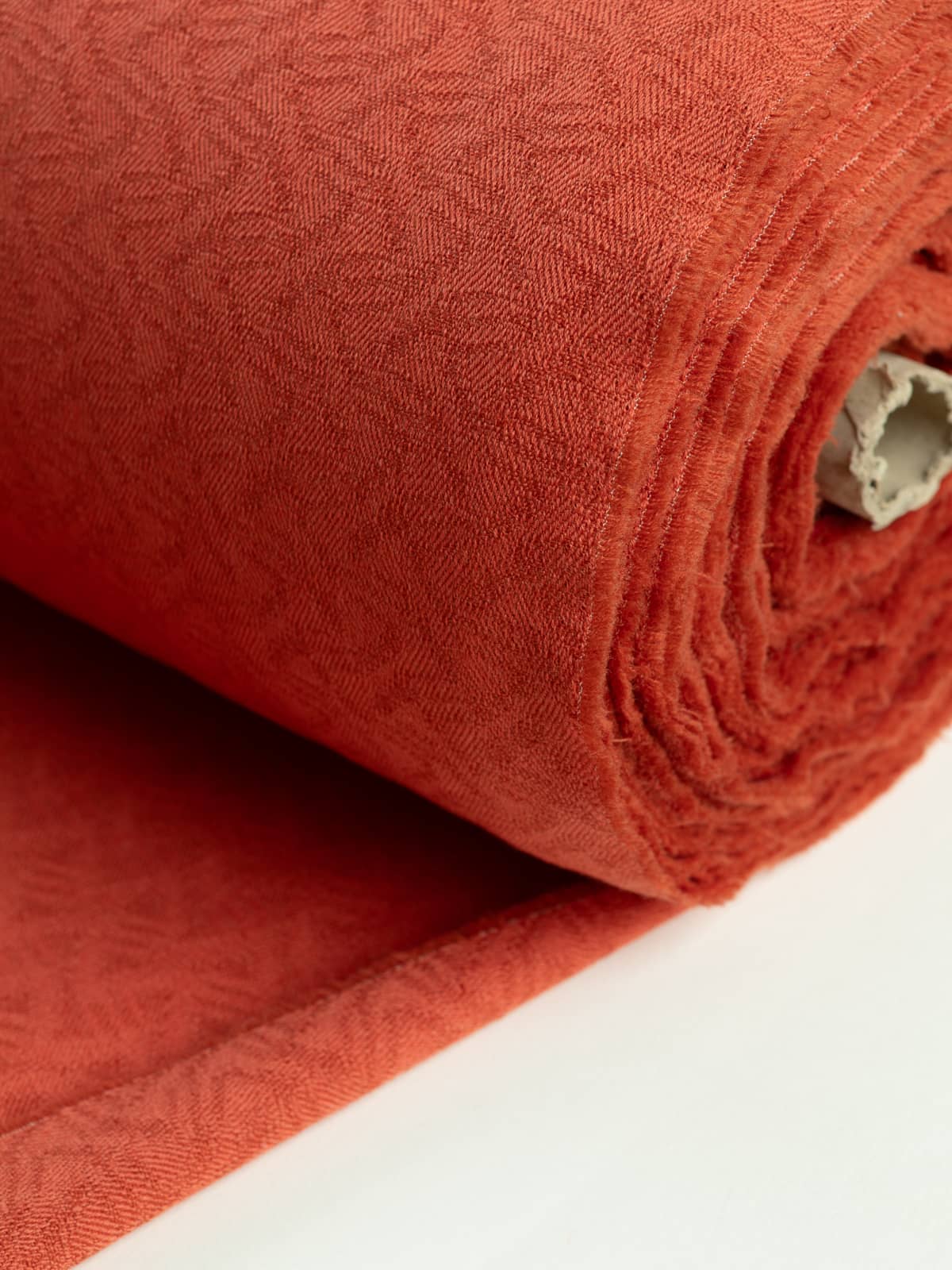 Shade: This copper-toned, first-rate Jacquard fabric, Autumn Wave, boasts a combination of the most subtle depths of orange-rust. The two tones create the most subtle difference, highlighting the design and producing the appearance akin to the movement of Autumn leaves rustling in the breeze. Use as a stand-alone statement or combine with other tonally compatible warm hues within this range- Cafe Creme Wave, Electrum Wave and Midas Wave.