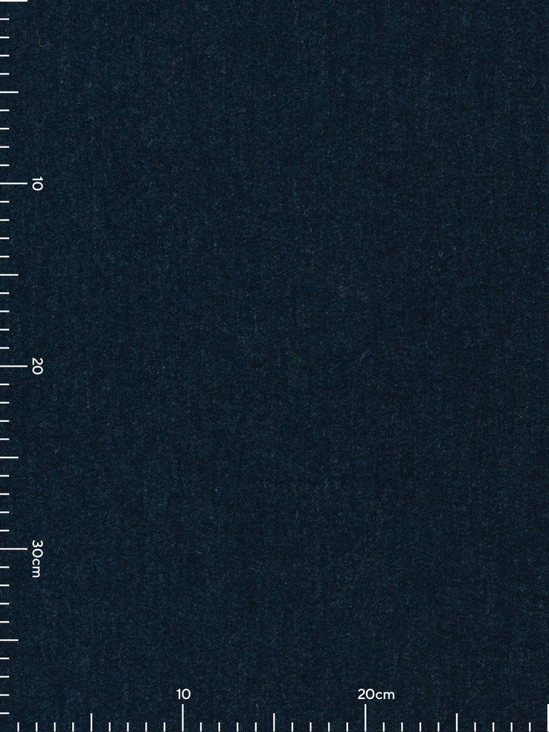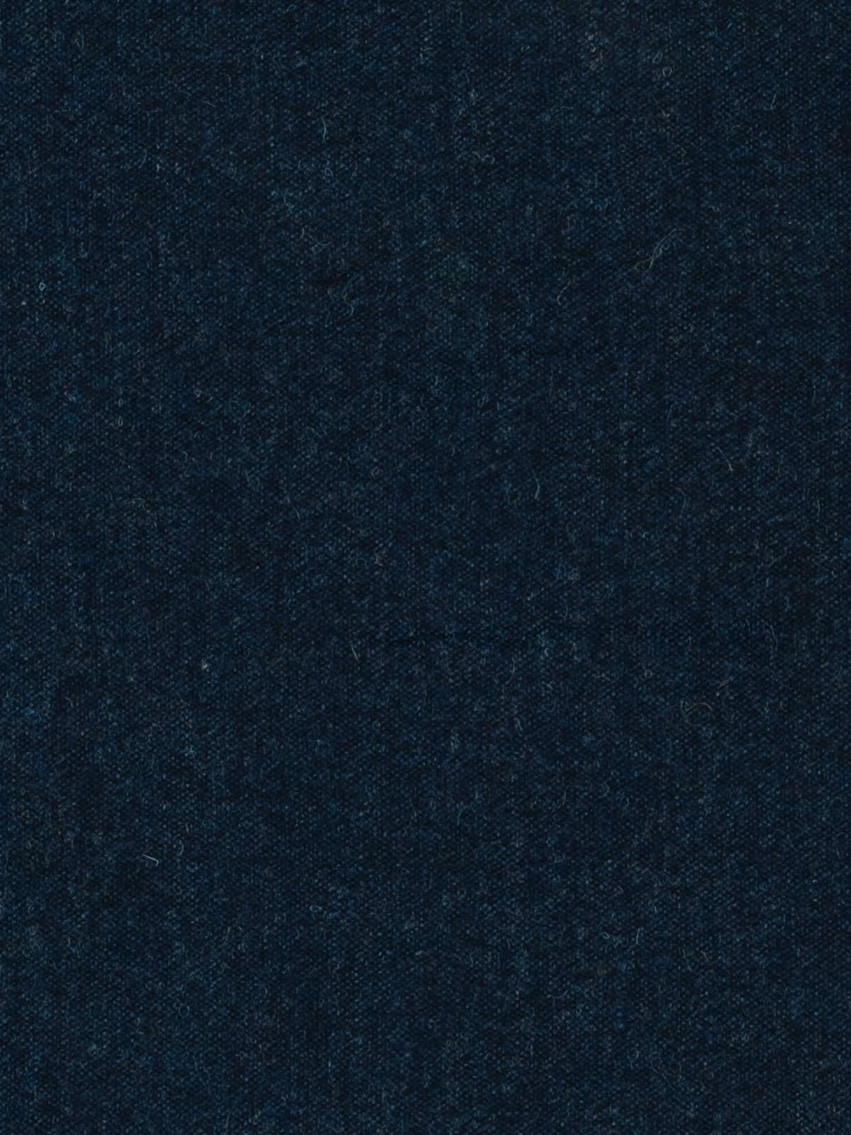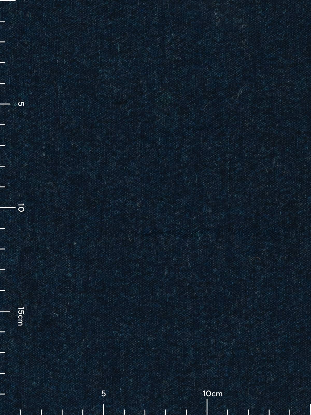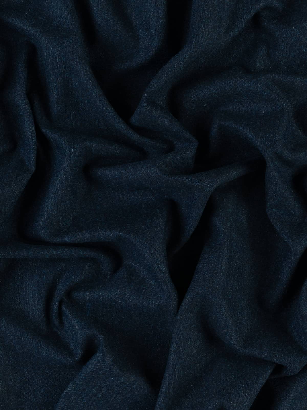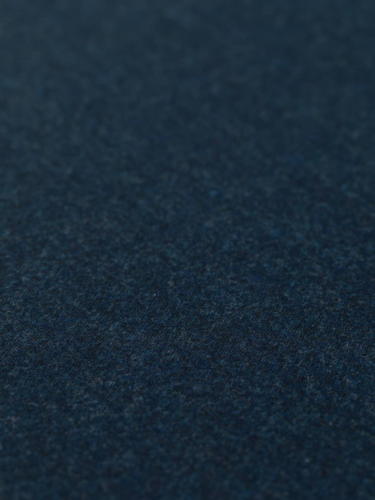 A melange flannel with a full scope of blues from denims through to navy (weft), with a true black warp. There are sporadic natural white neps within the weft creating a speckled appearance akin to that of a clear sky full of stars and planets.