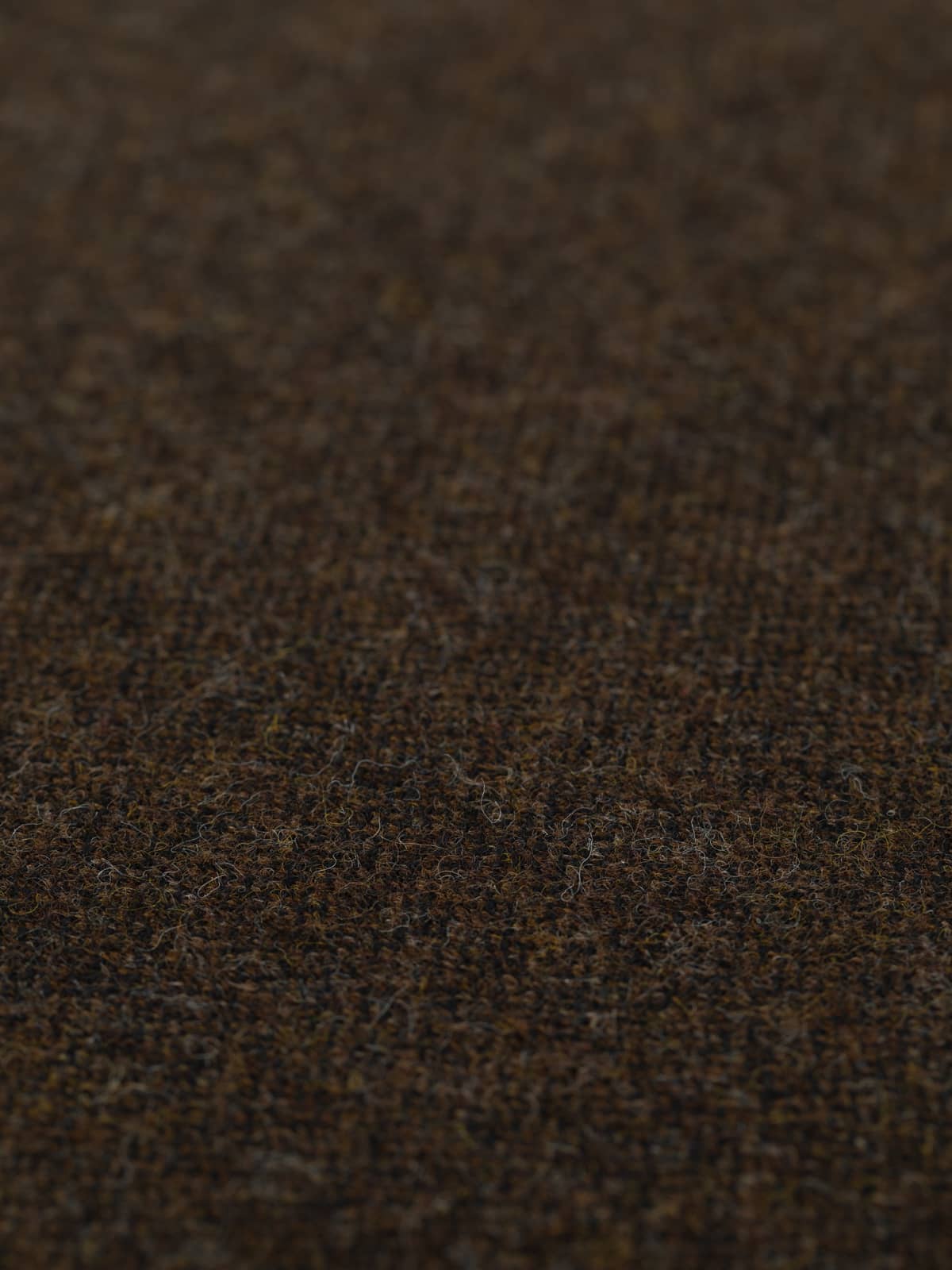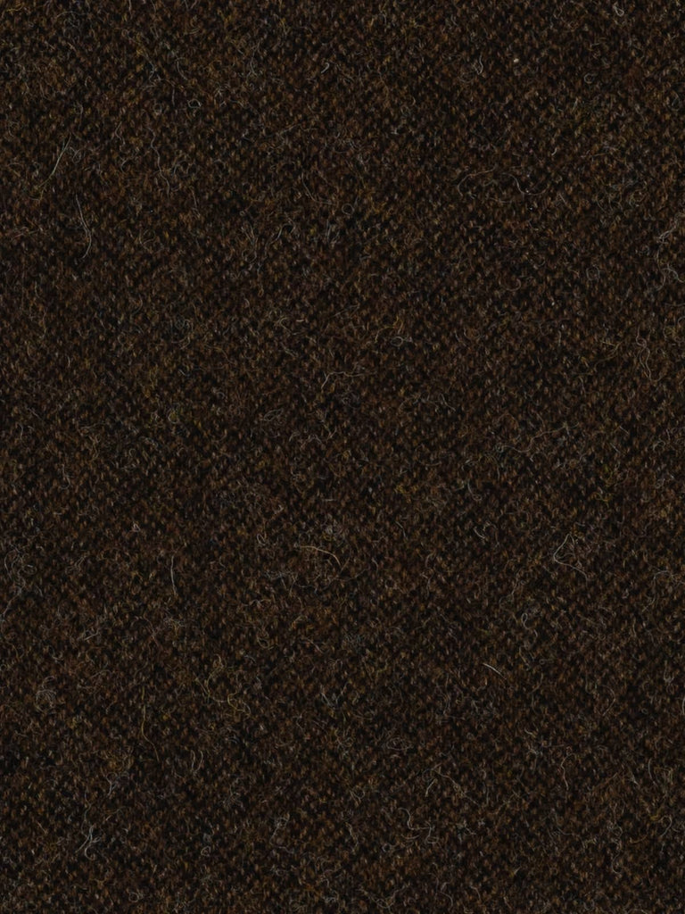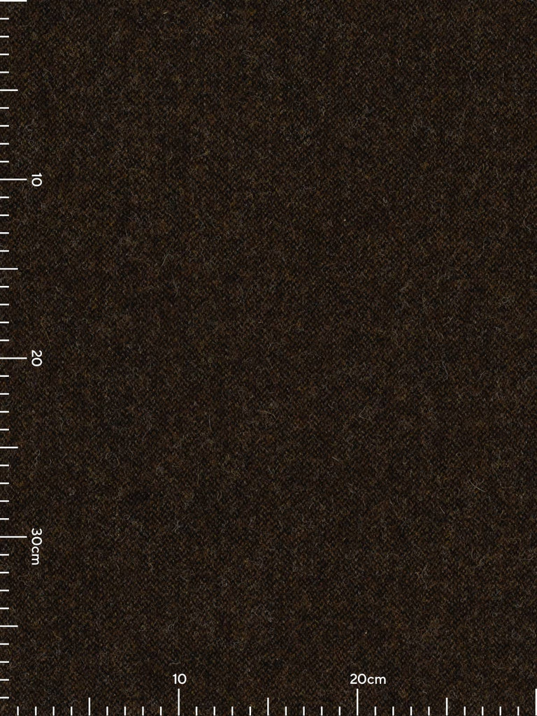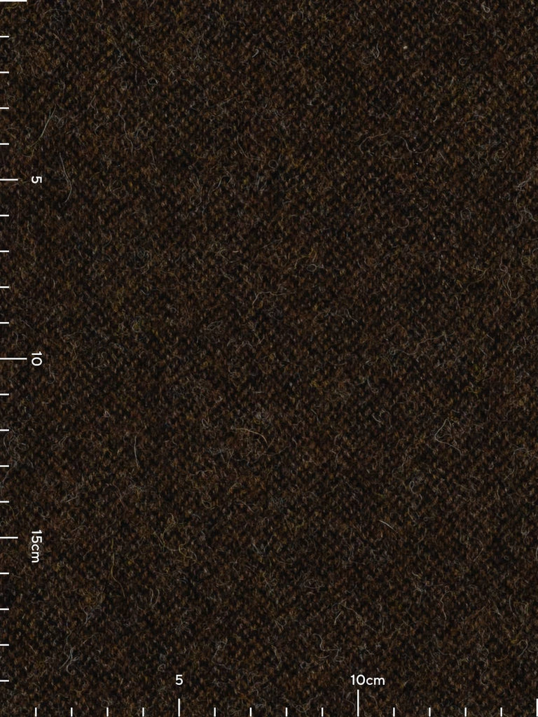 A classic country melange of rich brown and black-toned yarns forms this cosy, feathered herringbone woven tweed. These earthy, natural tones evoke rustic country life, wild heathlands where ponies roam and dark, peaty soil underfoot. This dark brown and black melange is versatile, easy to style, and a timeless addition to any wardrobe,  town or country.