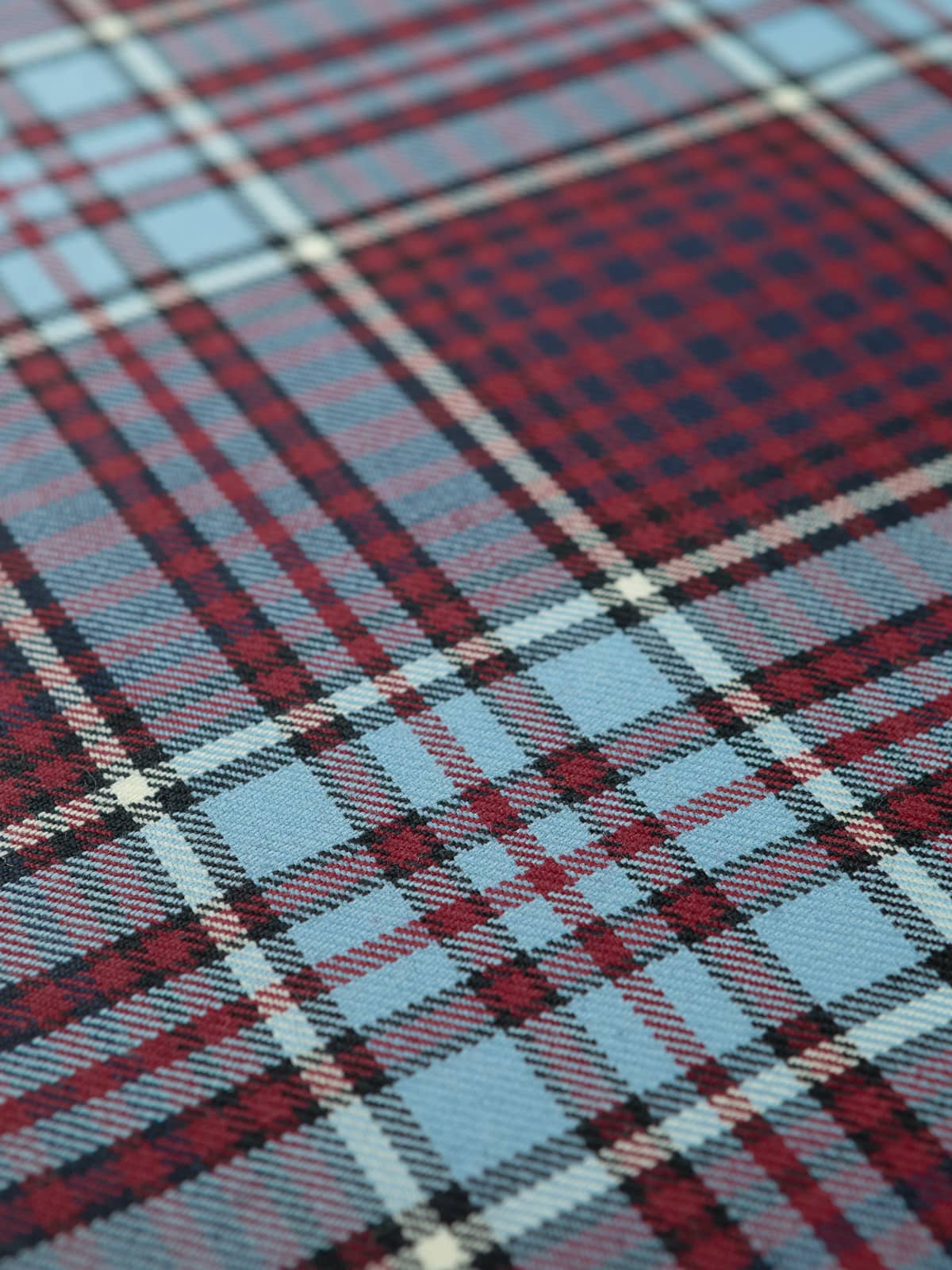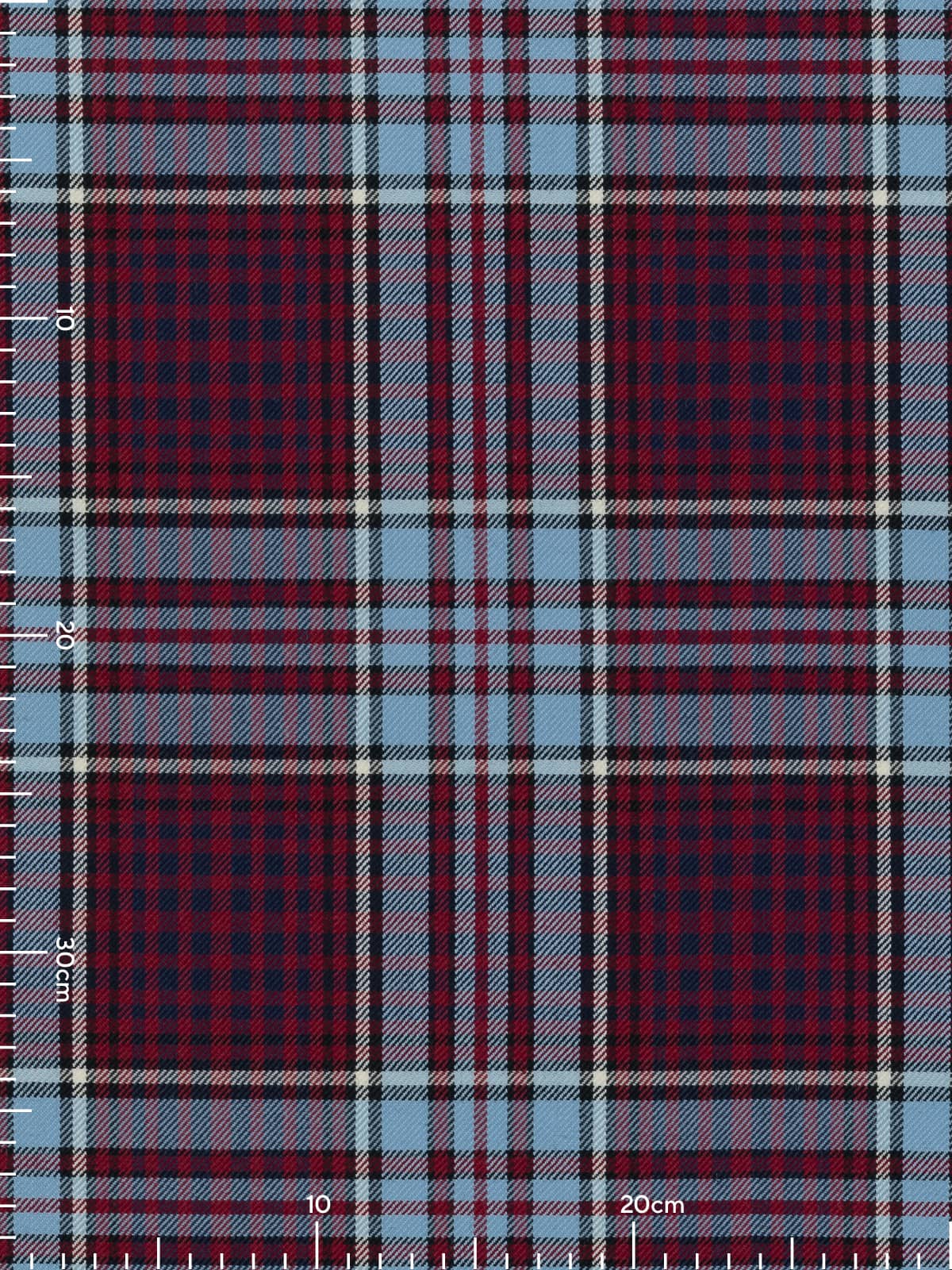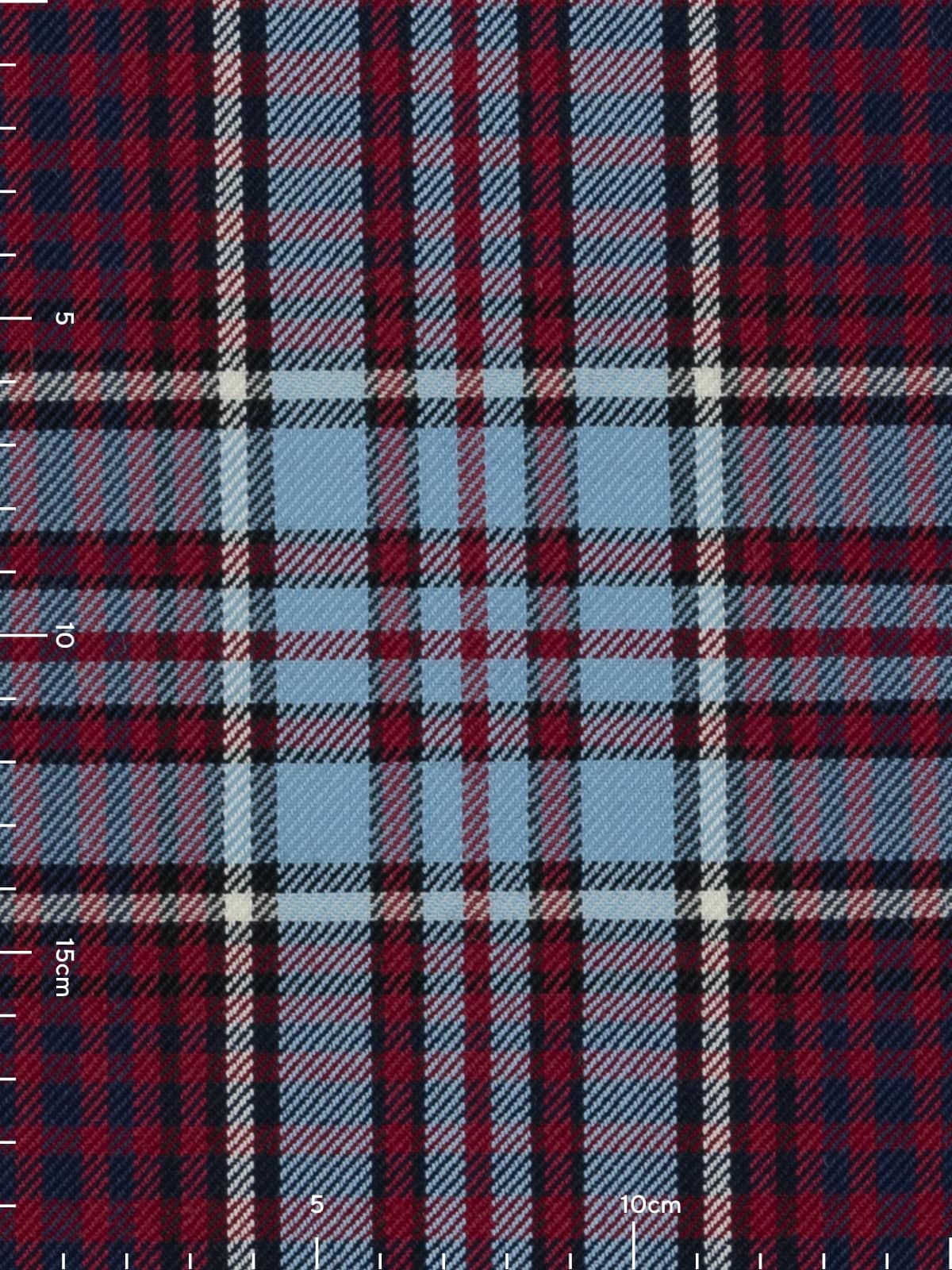 Shades: A distinctive military palette featuring wine‑red panels combined with duck‑egg blue, supported by black for depth and crisp white for definition. This colourway reflects the officially recognised Royal Canadian Air Force tartan, whose tones draw directly from Air Force insignia colours.