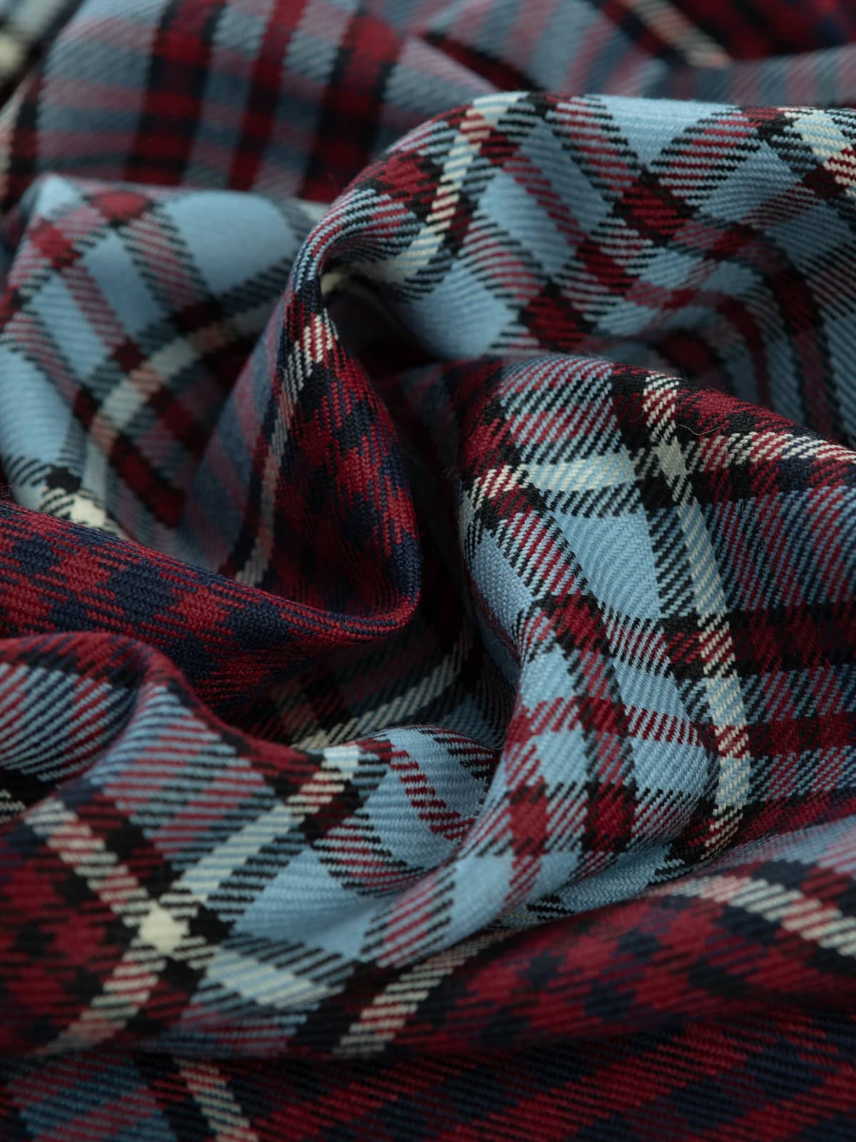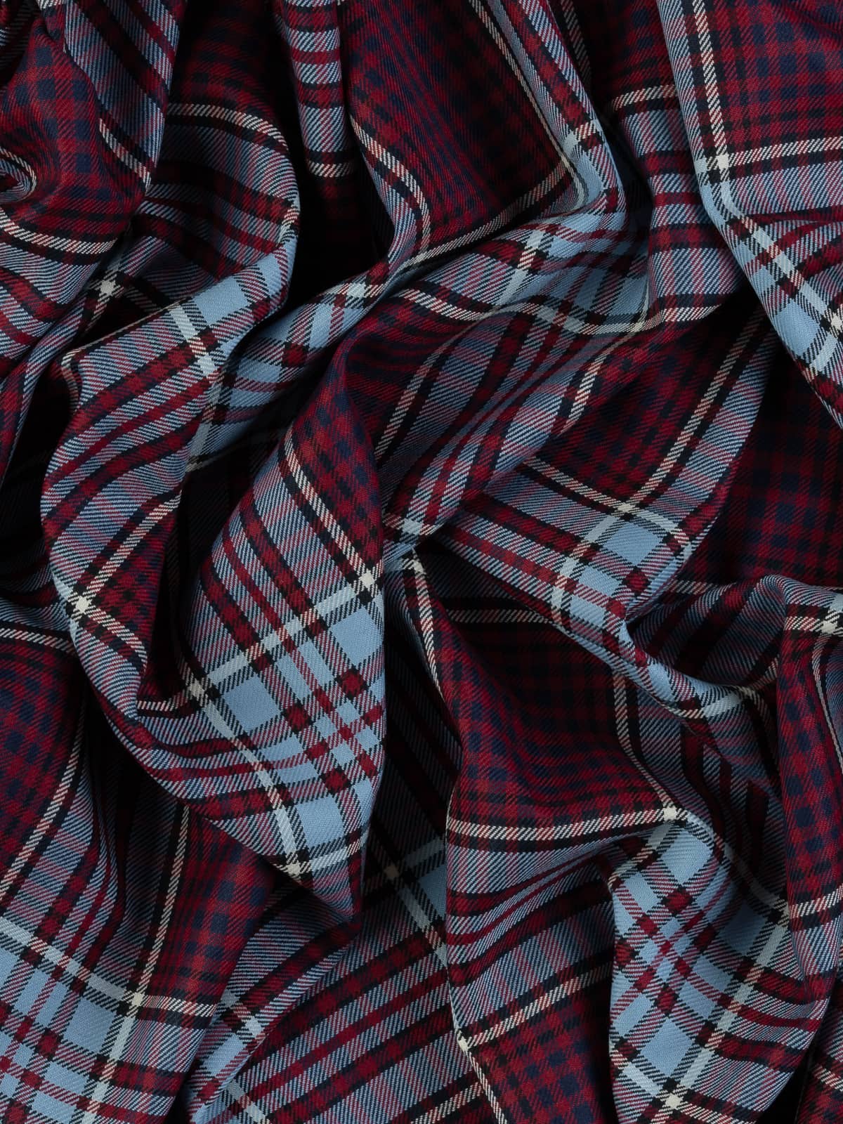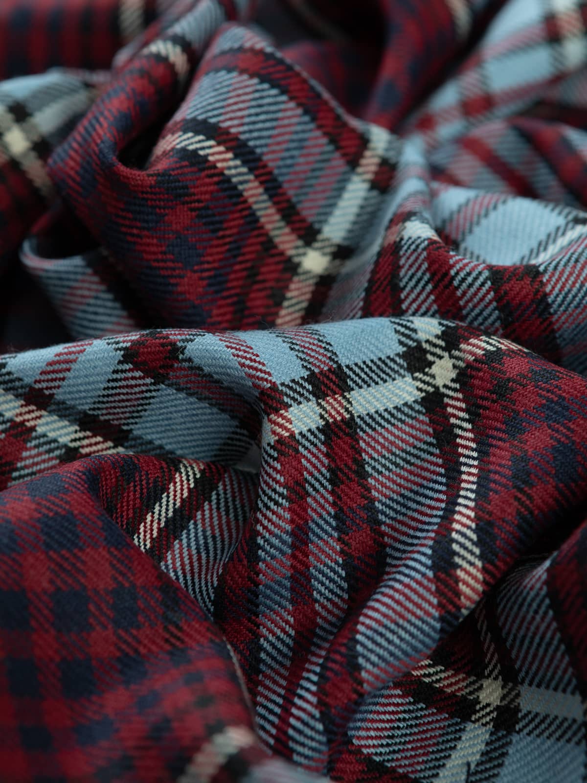 Shades: A distinctive military palette featuring wine‑red panels combined with duck‑egg blue, supported by black for depth and crisp white for definition. This colourway reflects the officially recognised Royal Canadian Air Force tartan, whose tones draw directly from Air Force insignia colours.