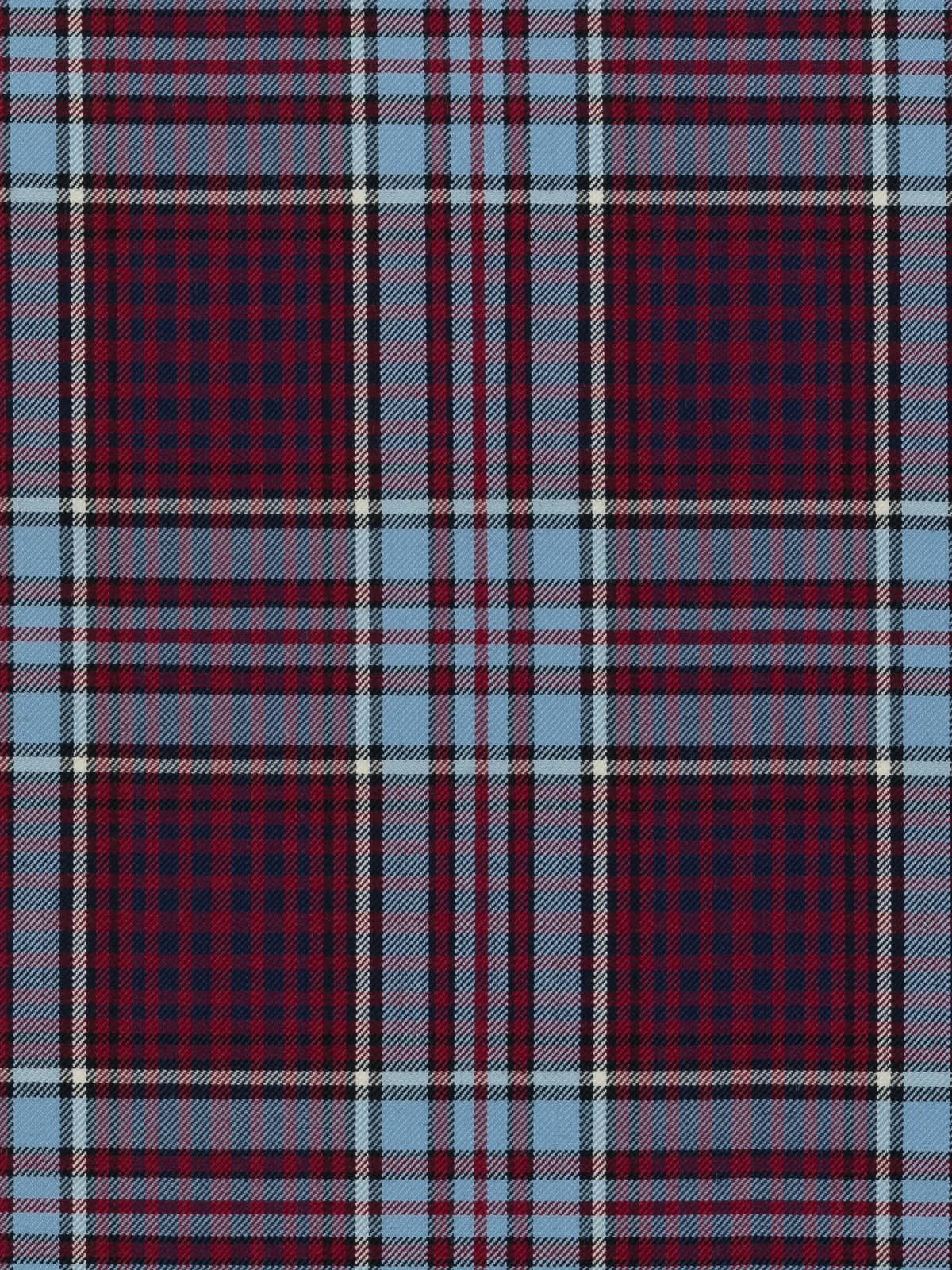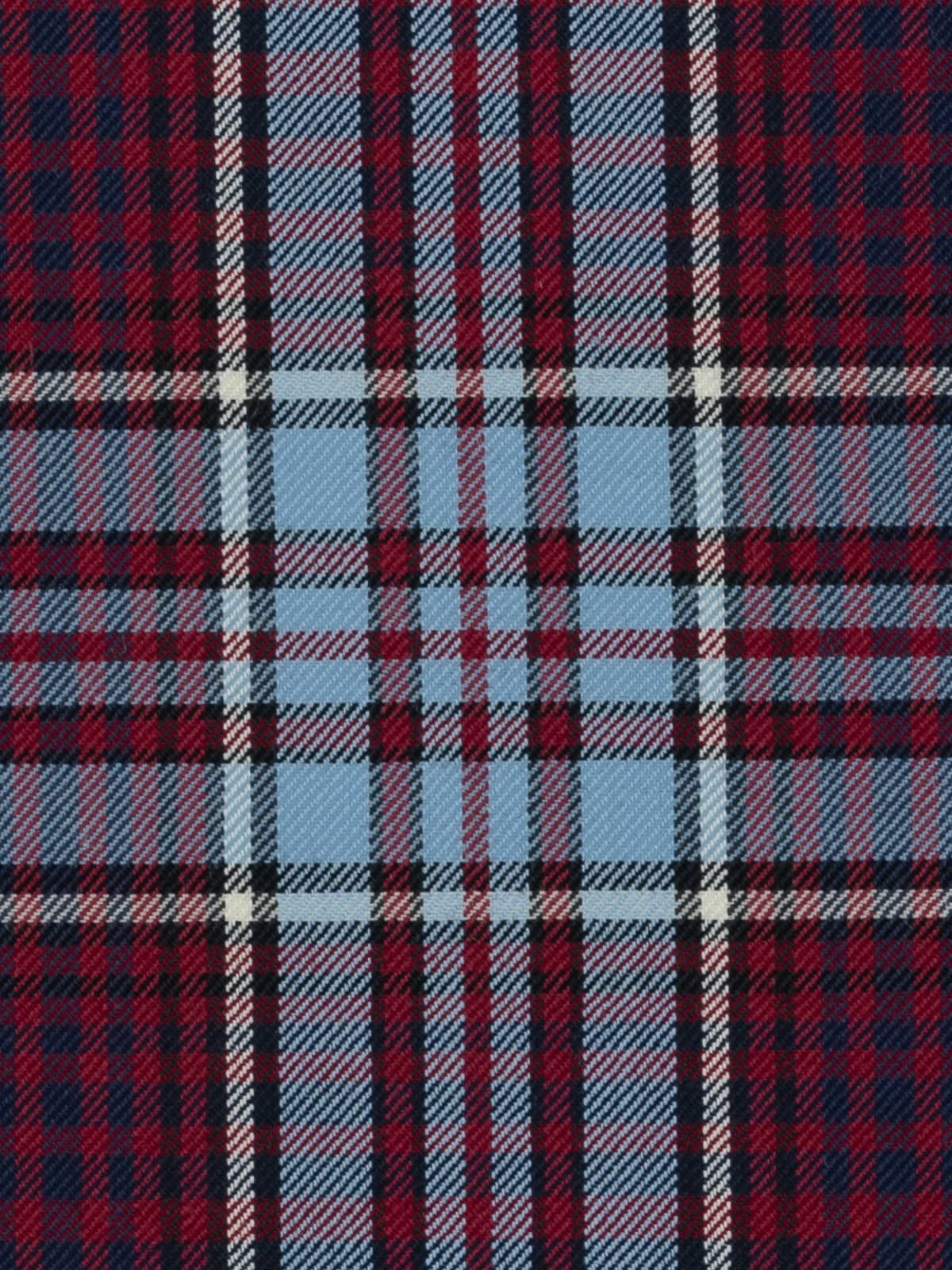 Design: A structured sett formed from large wine‑red squares framed by repeated blue, black and white overchecks. The pattern originates from a 1942 design by Group Captain Elmer Fullerton, based on Anderson tartan geometry but recoloured to represent RCAF service hues. Its symmetry and clear linework ensure strong visual identity and ceremonial clarity.