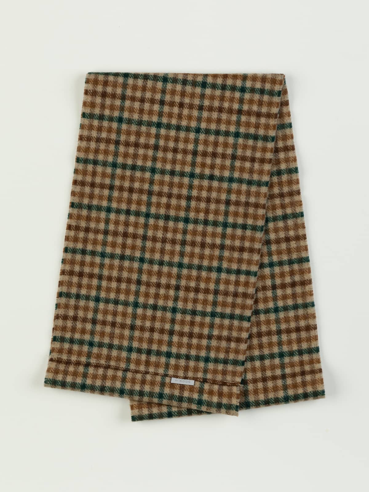 This classic country check evokes the warmth and charm of a sun-dappled woodland glen, with tawny graise beige forming a soft, inviting base. Accents of warm nut brown, golden acorn brown, and pineridge green thread through the pattern like scattered leaves and mossy undergrowth. Soft, luxurious, and timeless, it brings the comforting elegance of the countryside to your wardrobe.