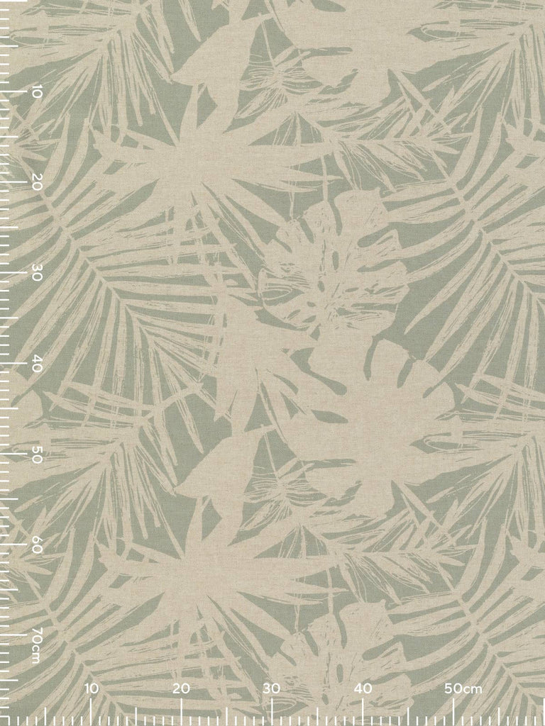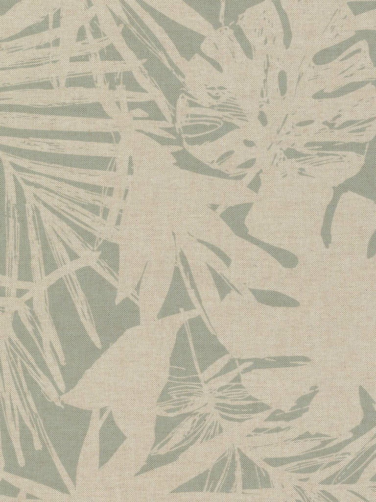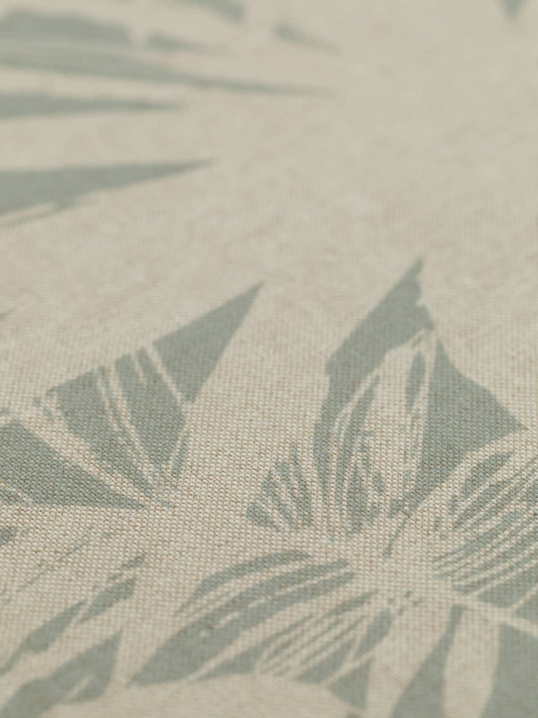 Design: Ombre Palms is printed with a negative space design of exotic leafy foliage, akin to a heavenly canopy of shade, bringing verdance. Palm fronds, Monstera leaves and other exotic beauties are featured in this design.