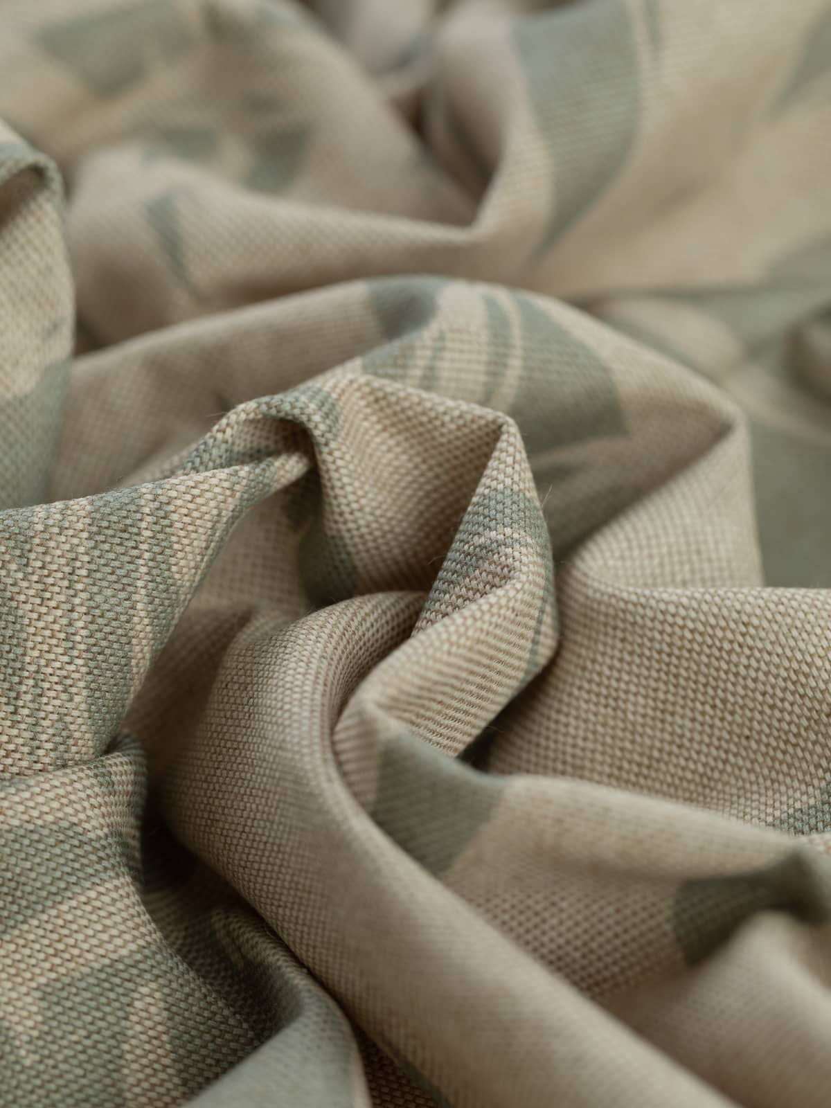 Shade: This excellent printed 'linen look' curtain fabric is printed with a simple but seriously stylish, grey hue. The combination of the natural flax-hued beige base and negative space printed design in a calming mid grey gives the impression of almost dappled shade.
