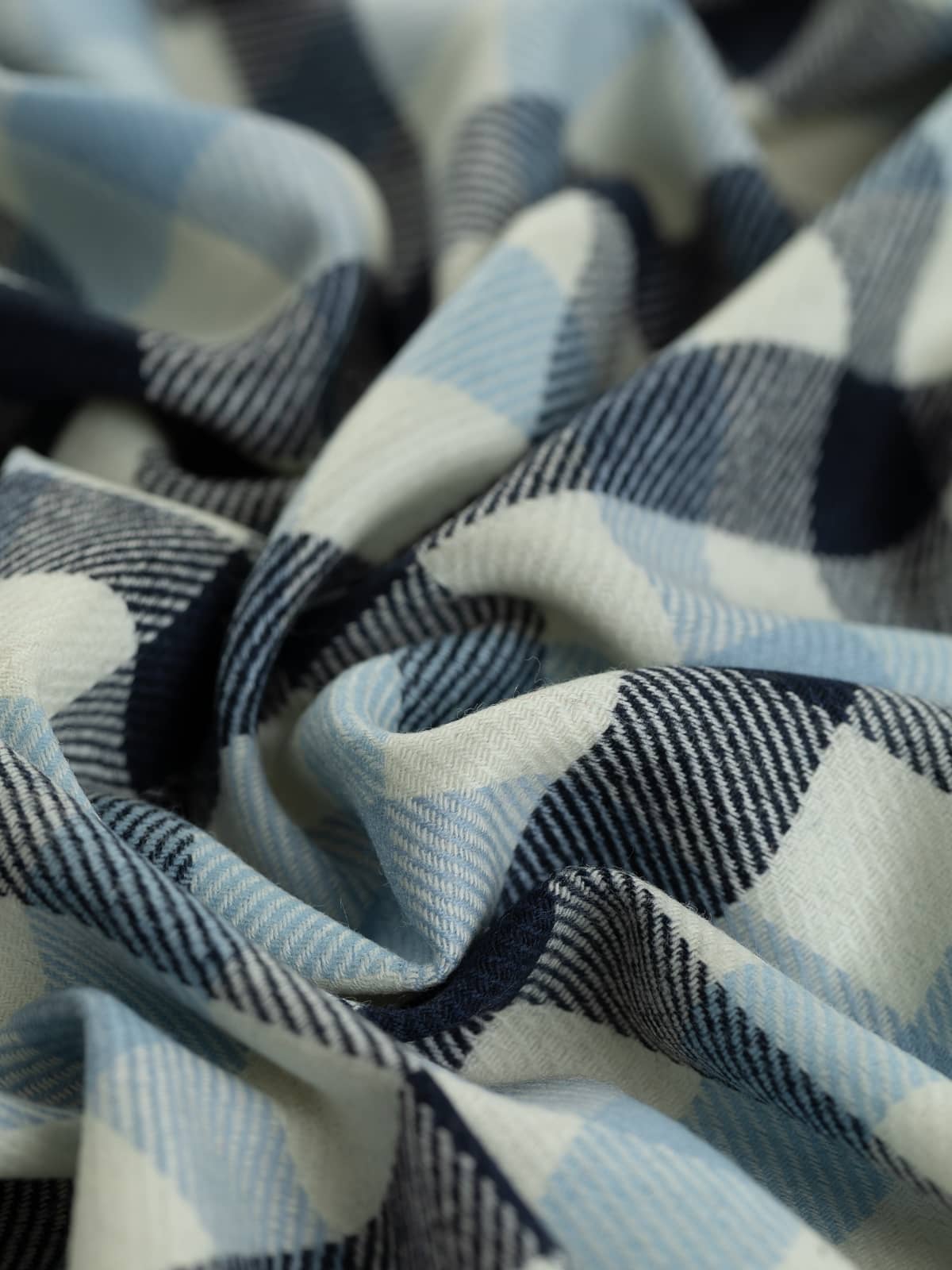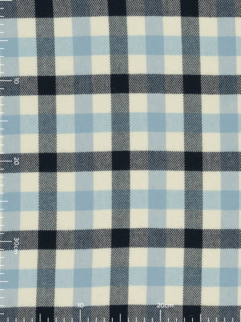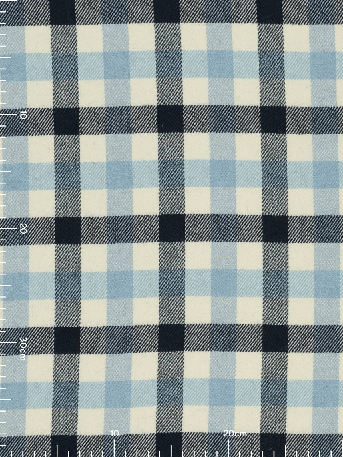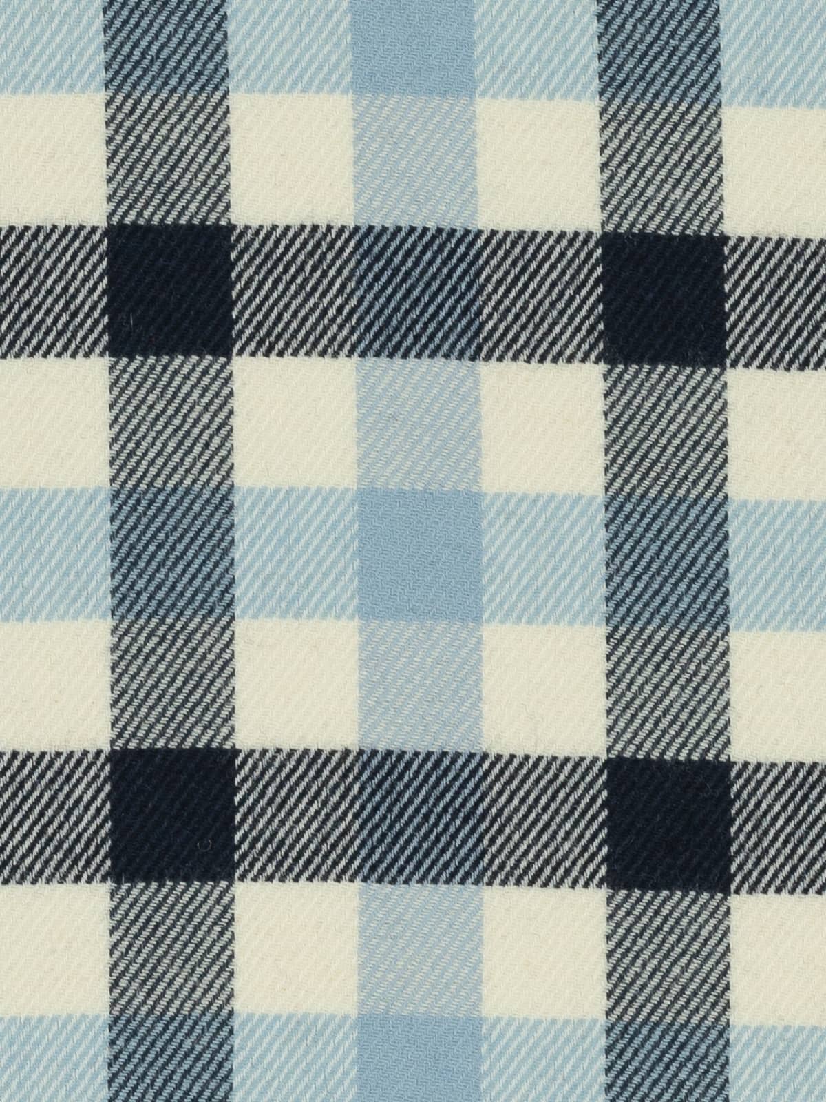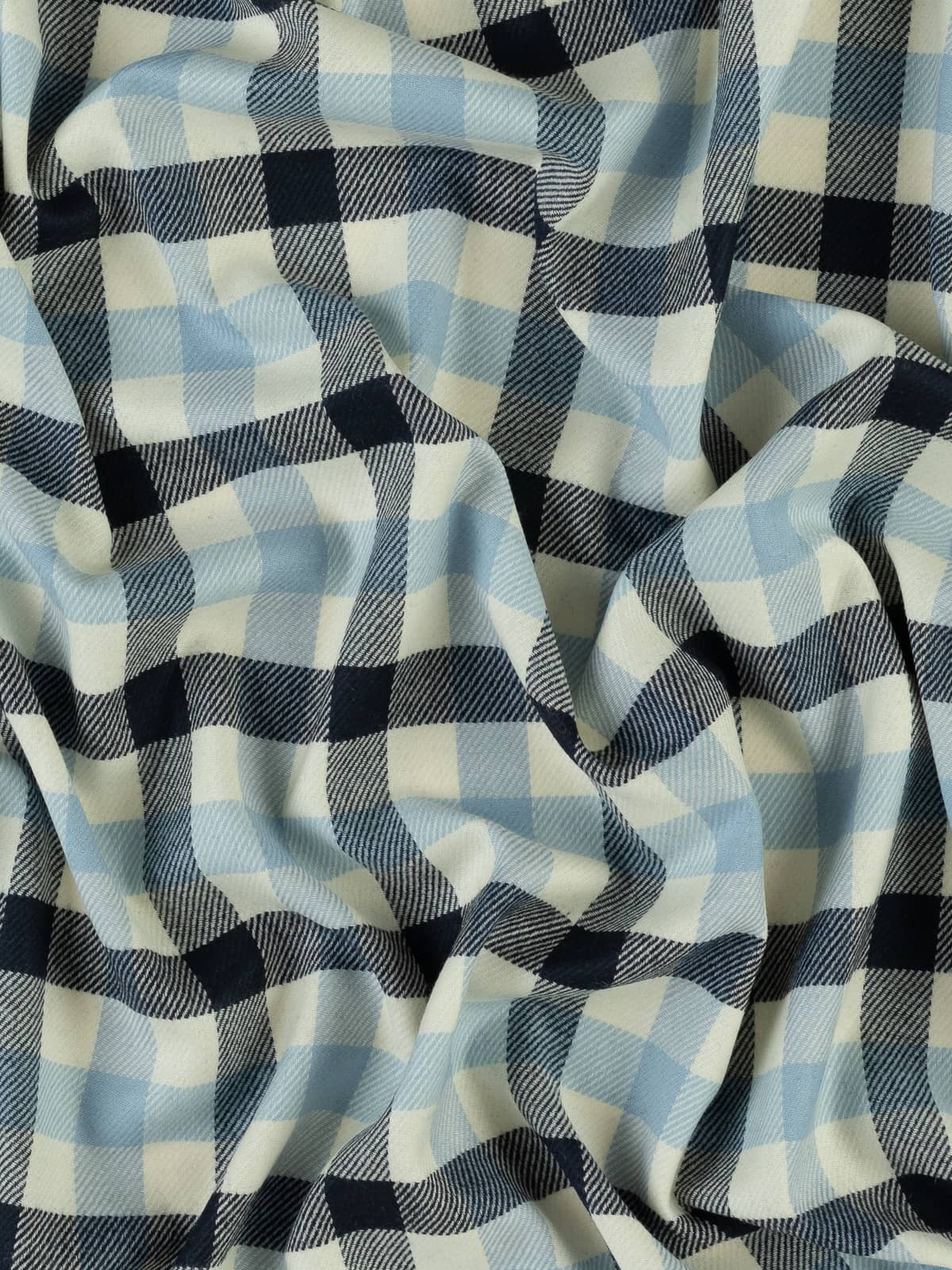 This classic twill plaid boast a palette of creamy off white, darkest navy and baby blue, all layering and weaving together to creating the perfect  Blue Picnic Plaid.