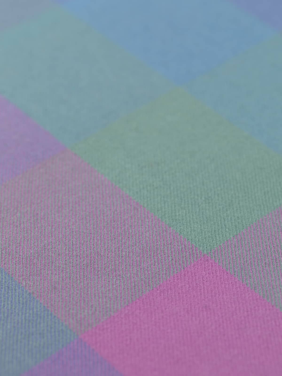 Shades: A rhapsody of lilac, mauve and complementary cool blue-green hues are woven in a repeating pattern of block checks (6cm x 8.5cm), forming a perfectly pretty patchwork reminiscent of shifting hydrangea blooms in full summer flourish.