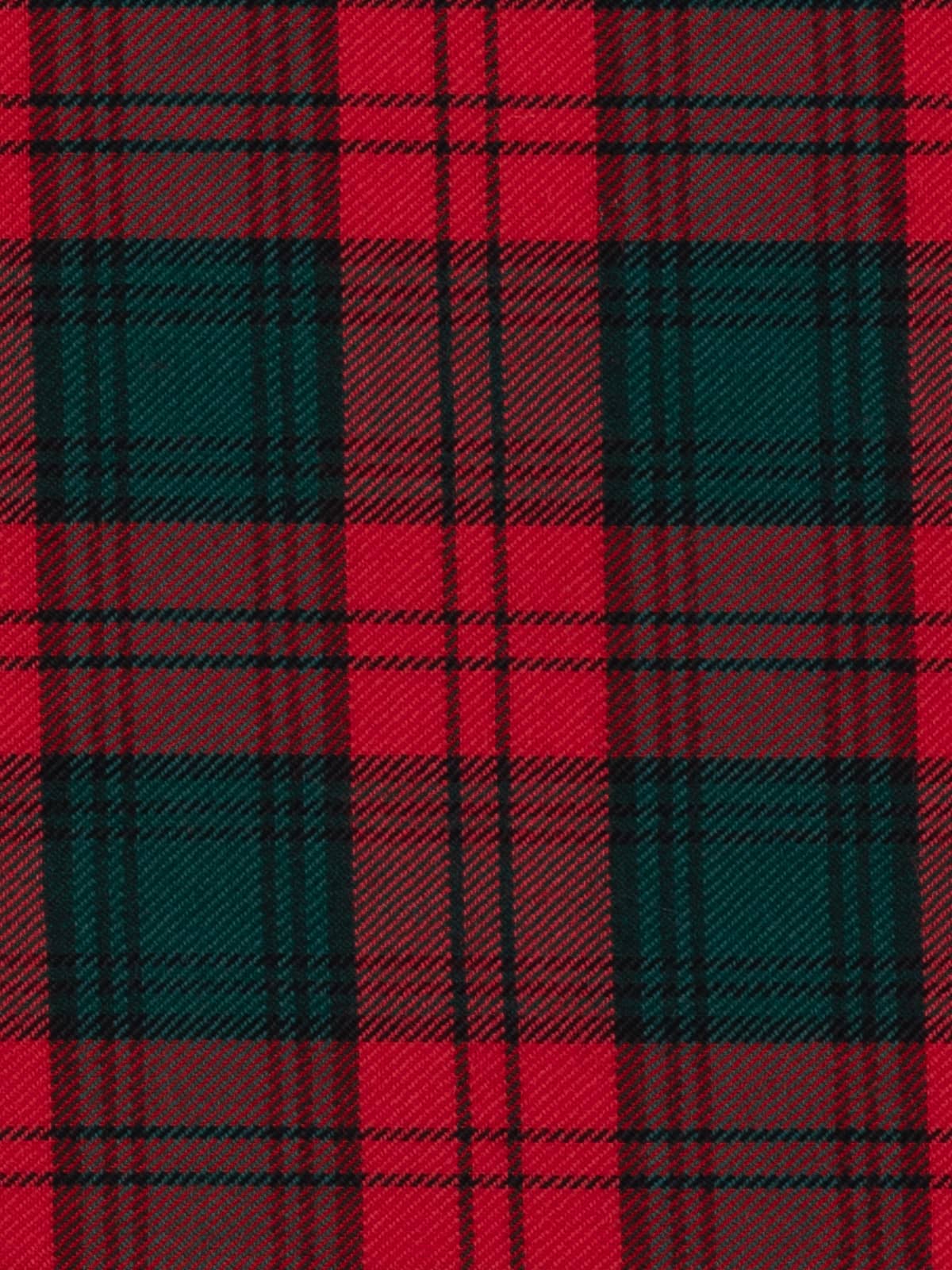 Design: A compact version of the Stewart of Atholl sett, arranged in small, repeating blocks that create a tight, miniature grid. The scarlet base forms prominent horizontal and vertical bands, intersecting with narrower green and navy sections. Slim black stripes run throughout the pattern, sharpening the geometry and adding definition to each square. The overall layout is dense and rhythmically structured, producing a highly detailed plaid effect.