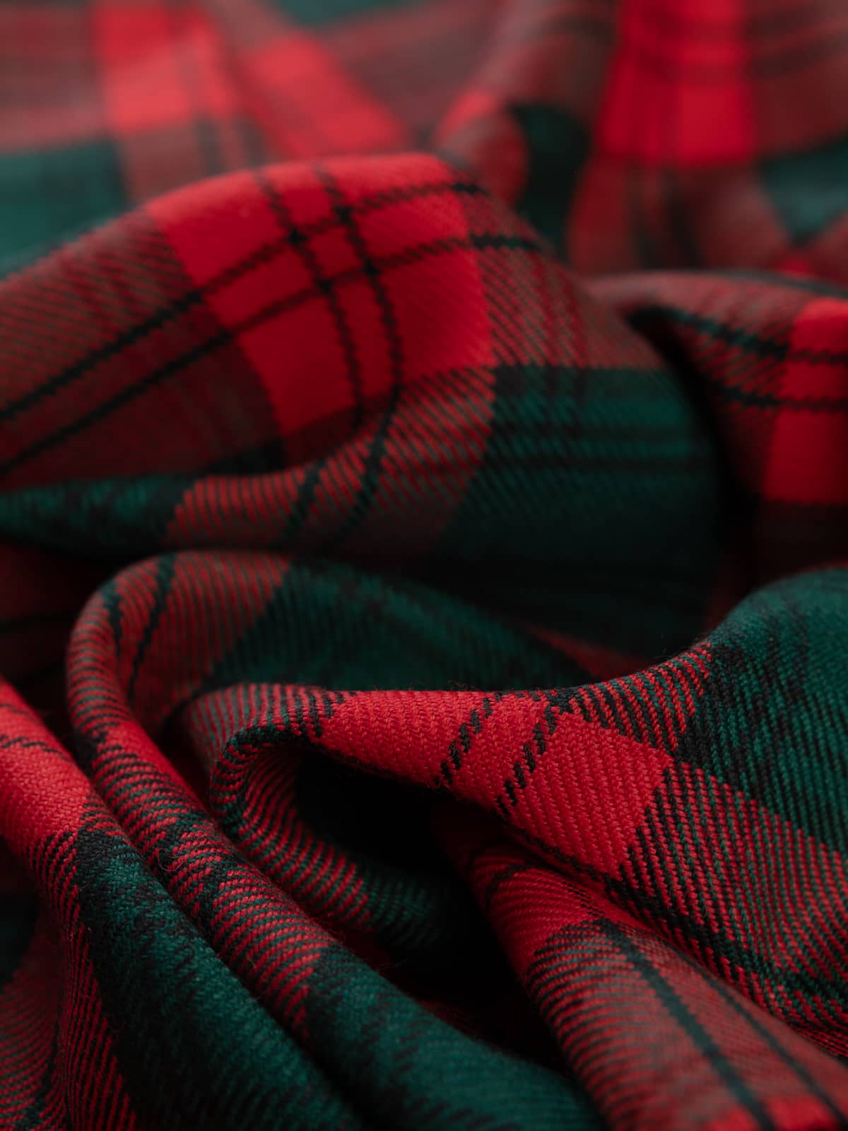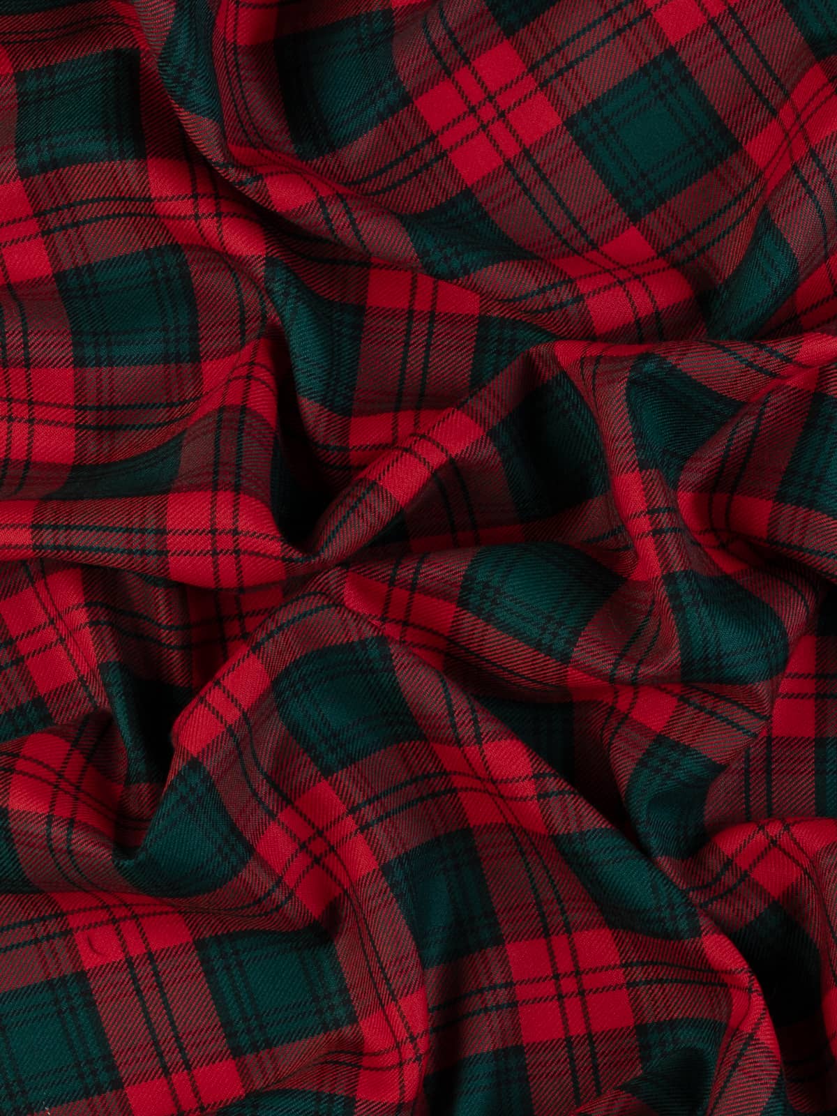 Shades: A vivid modern palette dominated by bright scarlet red, creating an energetic and high‑contrast foundation. This bold red is paired with deep bottle green and midnight navy, both of which appear in smaller proportions to give the pattern depth without dimming its brightness. Fine black lines reinforce the darker tones, while the interplay of saturated reds and greens keeps the tartan crisp and lively.