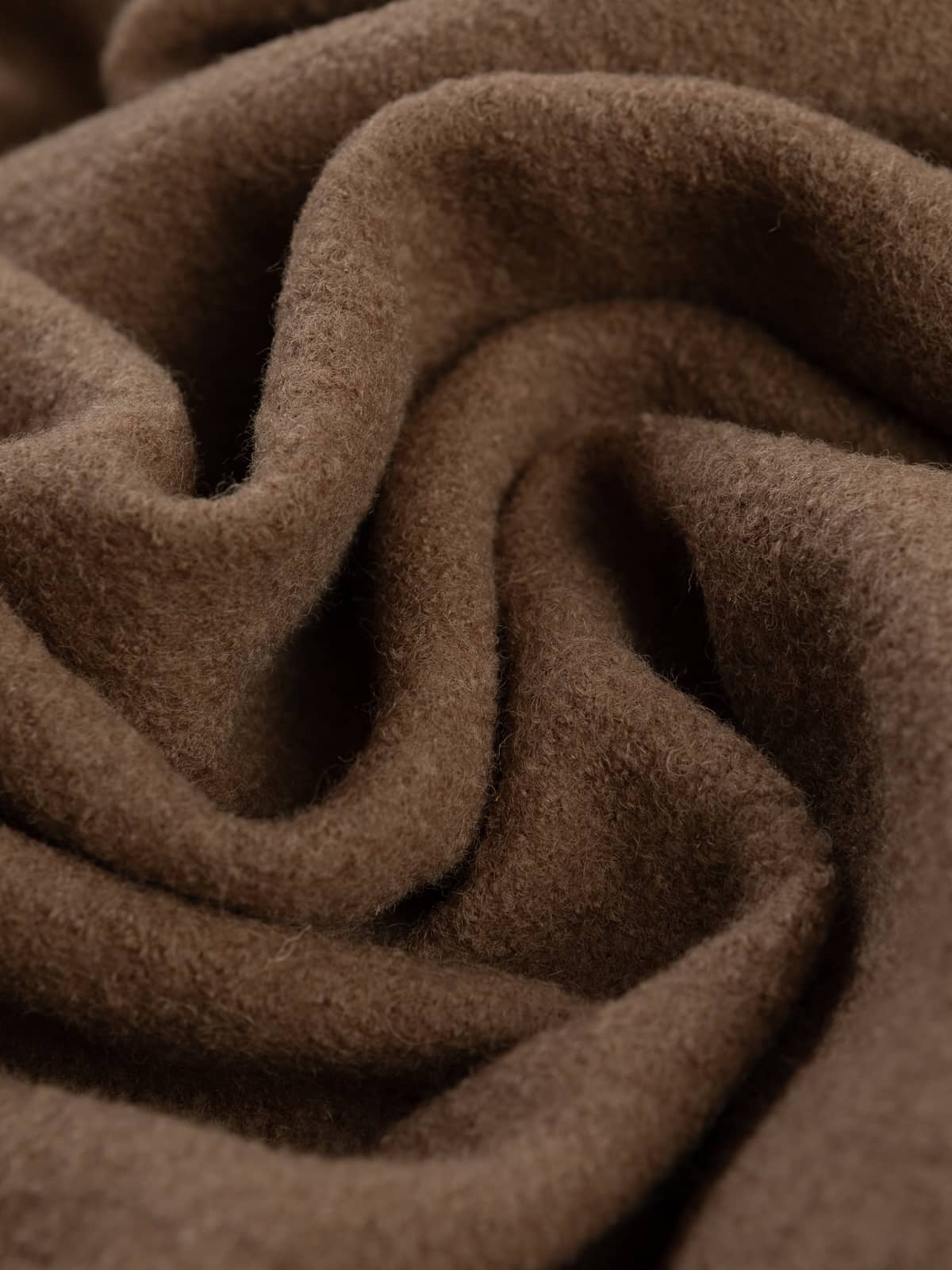 This first-rate knitted 100% Boiled Wool fabric presents a Soft Brown hue. This warm neutral recalls milky coffee, polished wood, and autumn leaves. Subtle and inviting, it lends a sense of comfort and natural elegance to any look.