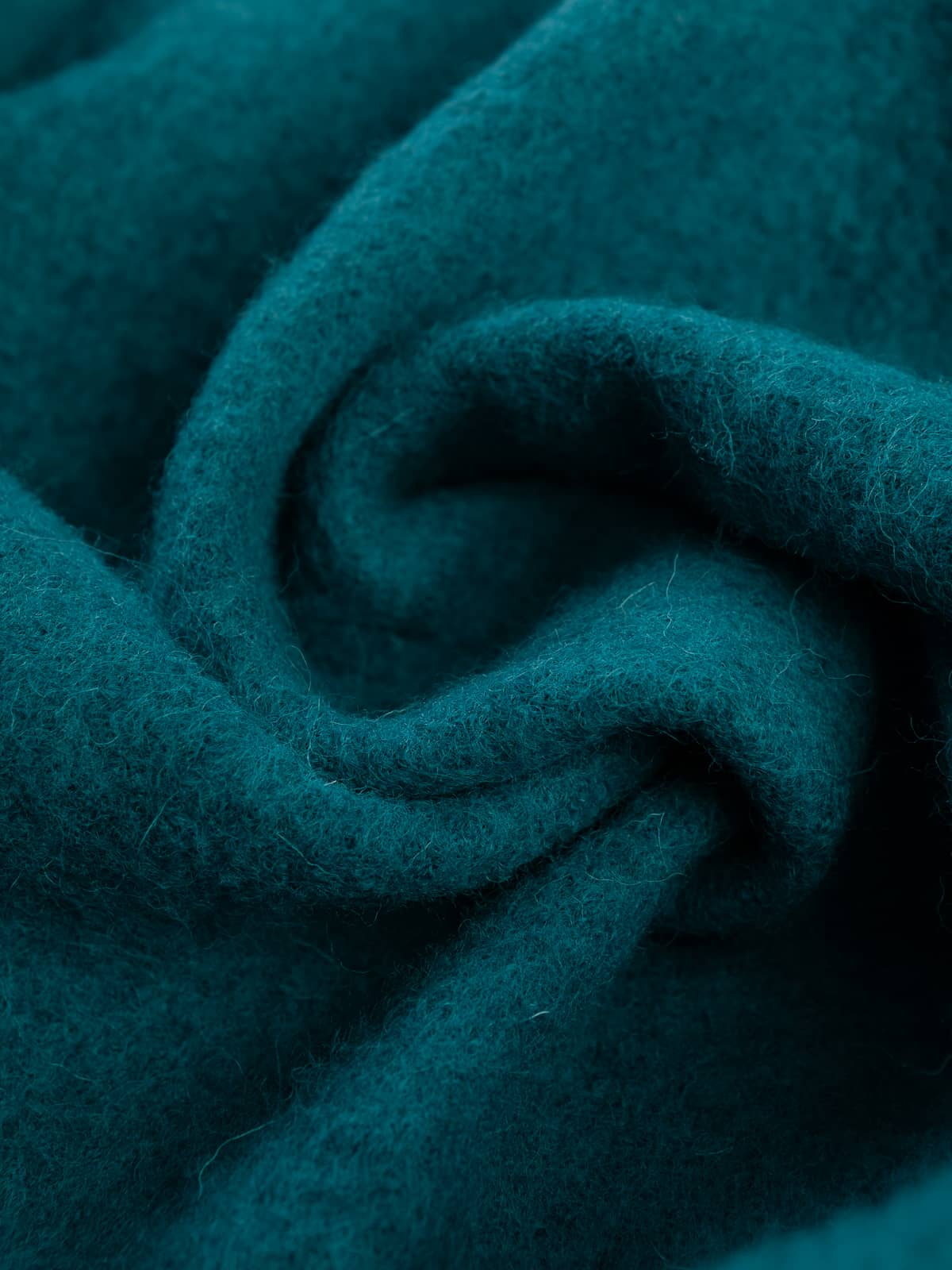 This first-rate knitted 100% Boiled Wool fabric boasts a captivating, rich Turquoise Gem hue. This radiant blue-green shade evokes the crystalline waters of a Mediterranean bay and the vivid shimmer of precious turquoise stone. It carries both the refreshing clarity of blue and the exotic warmth of green, resulting in a colour that feels uplifting yet refined.