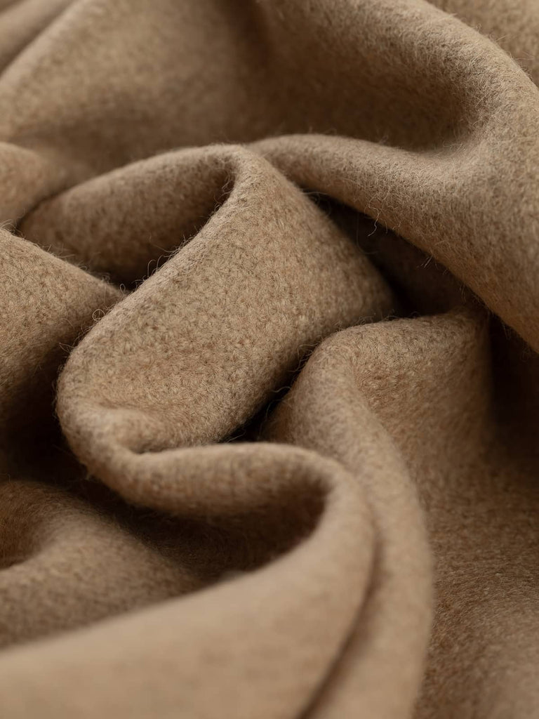 The soft face of the fabric reveals its secret at first touch, a brushed lambswool hand that feels tender against the skin, lit with a delicate silky sheen. The weave dances subtly, suggesting patterns that intrigue the eye, offering depth and charm without ever becoming coarse.
