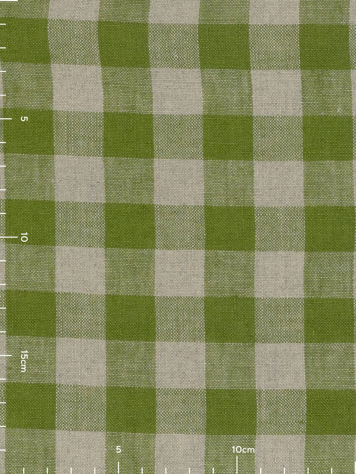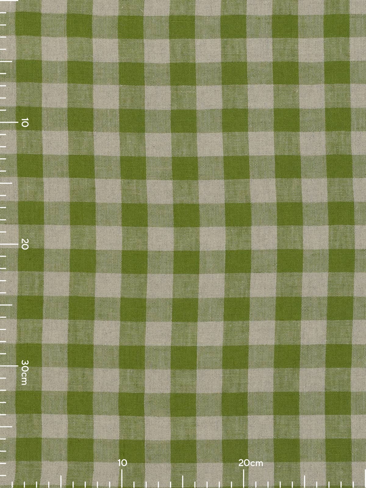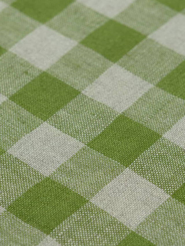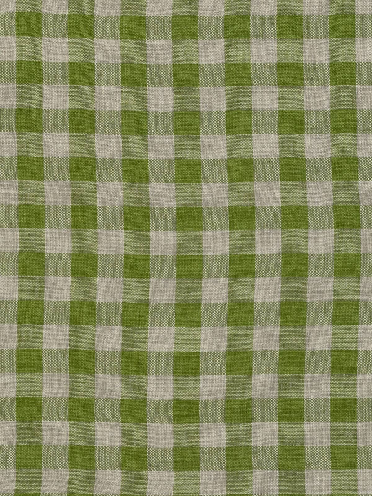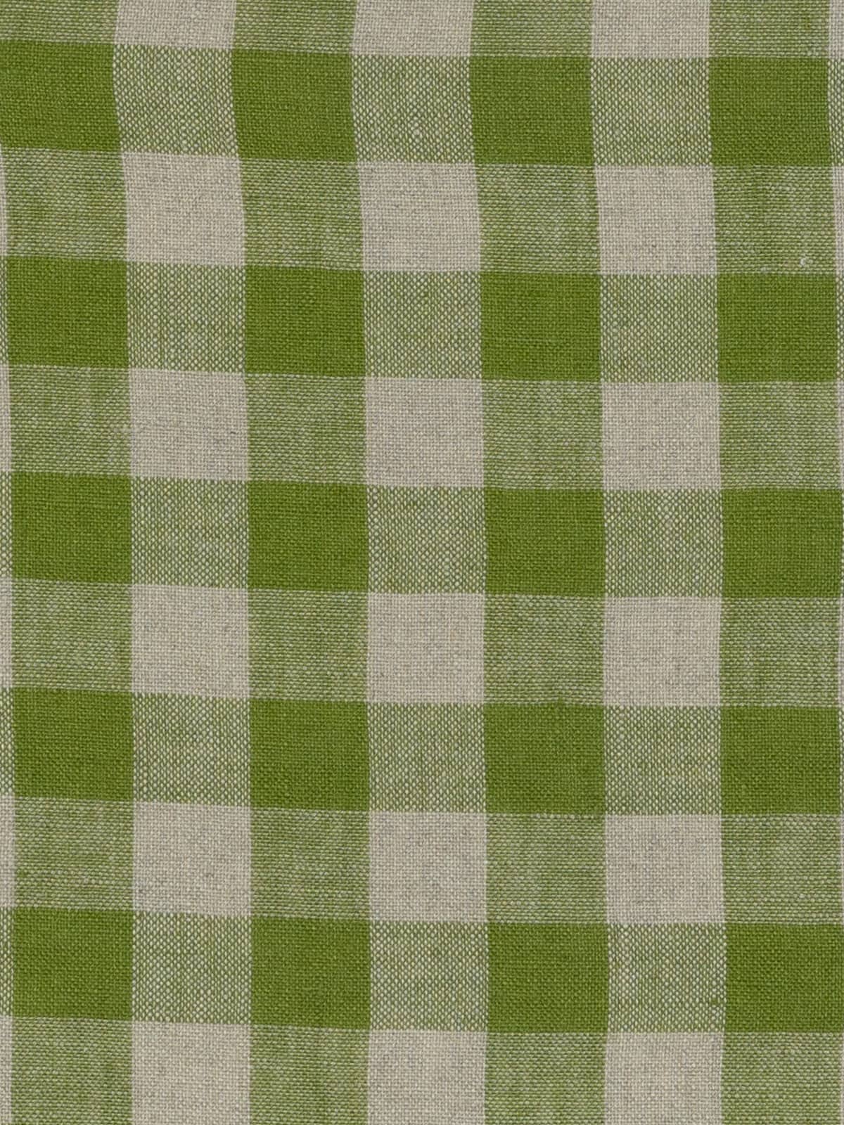 This chic French-style gingham linen, or as it's known in France, "Vichy" linen, is woven with a combination of earthy, nature-inspired hues. Natural flax beige acts as the grounding element, with a grassy olive green woven alongside.