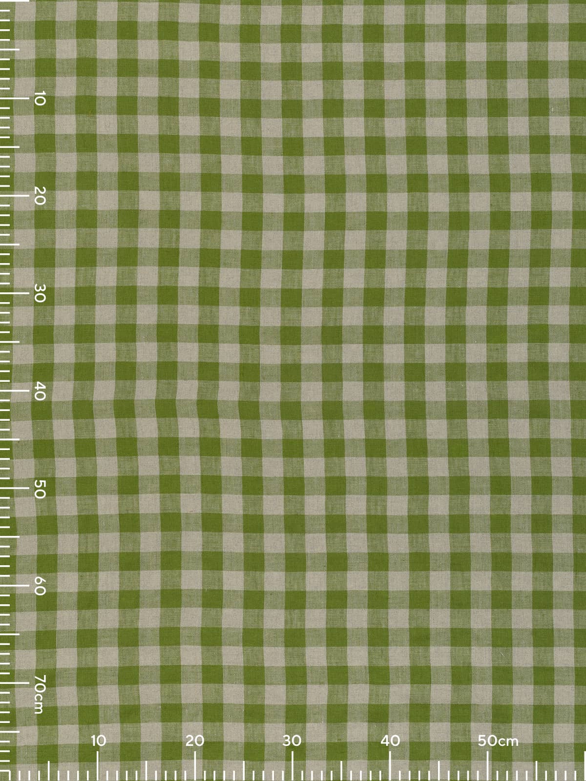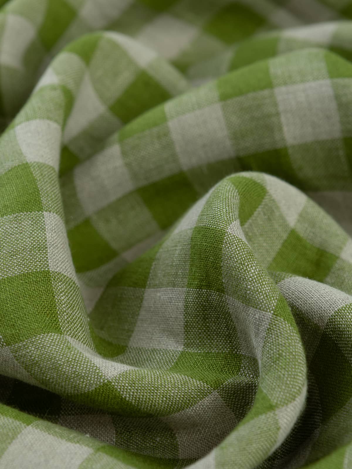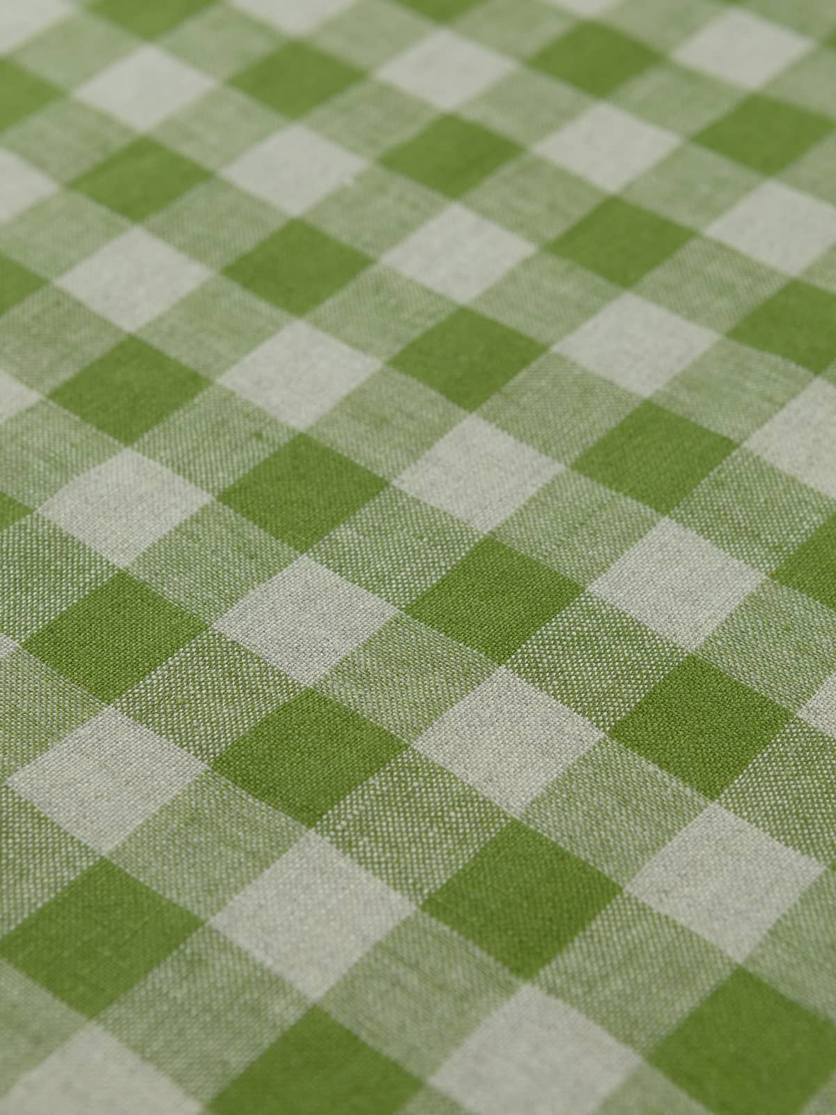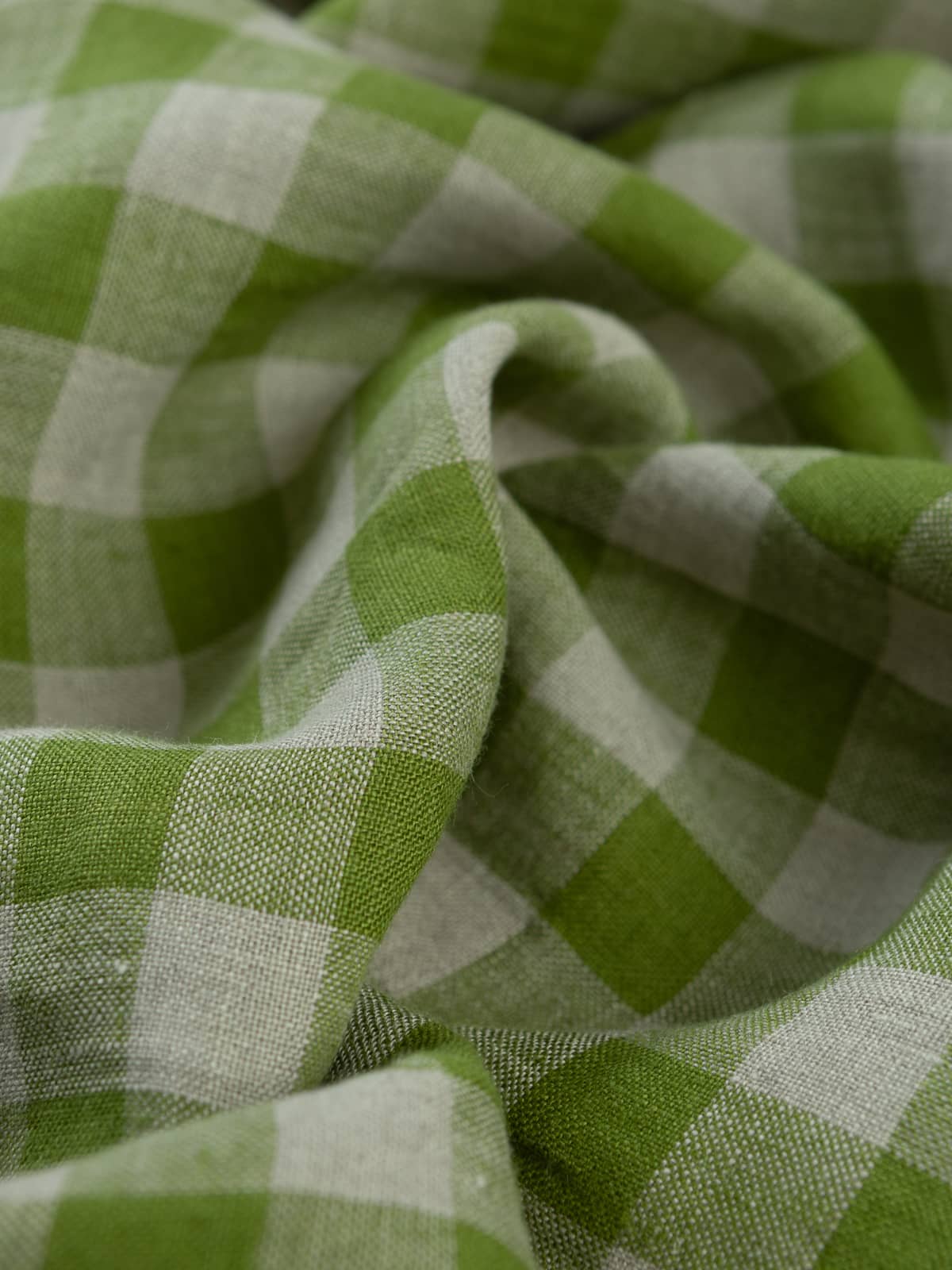 This chic French-style gingham linen, or as it's known in France, "Vichy" linen, is woven with a combination of earthy, nature-inspired hues. Natural flax beige acts as the grounding element, with a grassy olive green woven alongside.