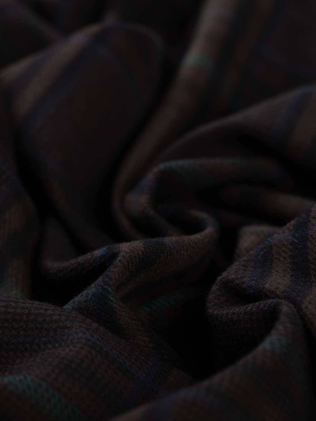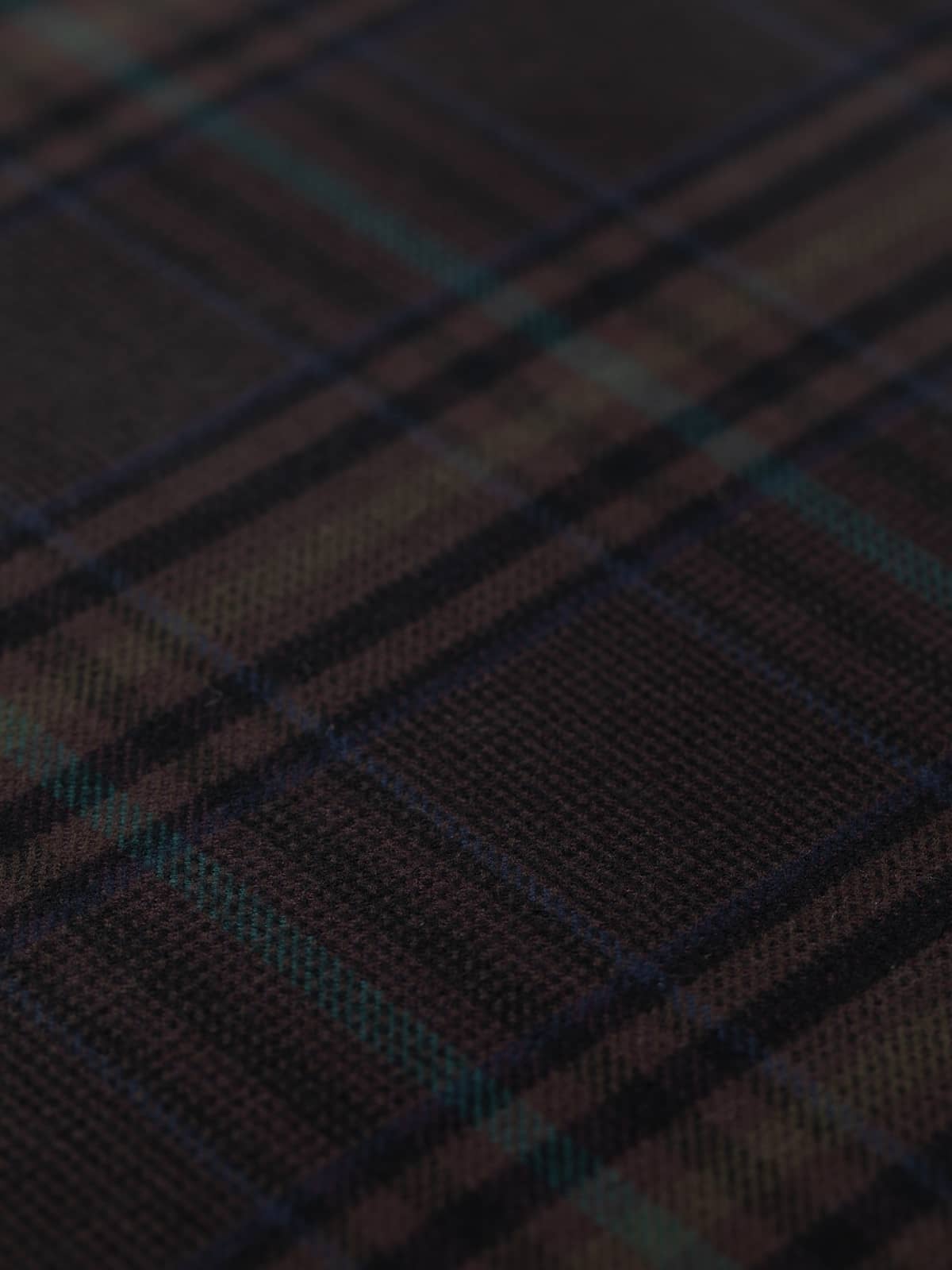 Shades: Brackenmoor District Flannel is a double-faced cotton flannel with the visual character of a traditional wool tweed. It balances strength with considered design. The peat-brown base brings an earthy, grounded warmth, enriched by black detailing and overchecks that add structure and definition. Spruce green overchecks echo dense evergreen canopies, while olive green reinforces the utilitarian, outdoor heritage. Accents of French navy introduce a refined, tailored contrast, bridging rugged countryside utility with urban sophistication.