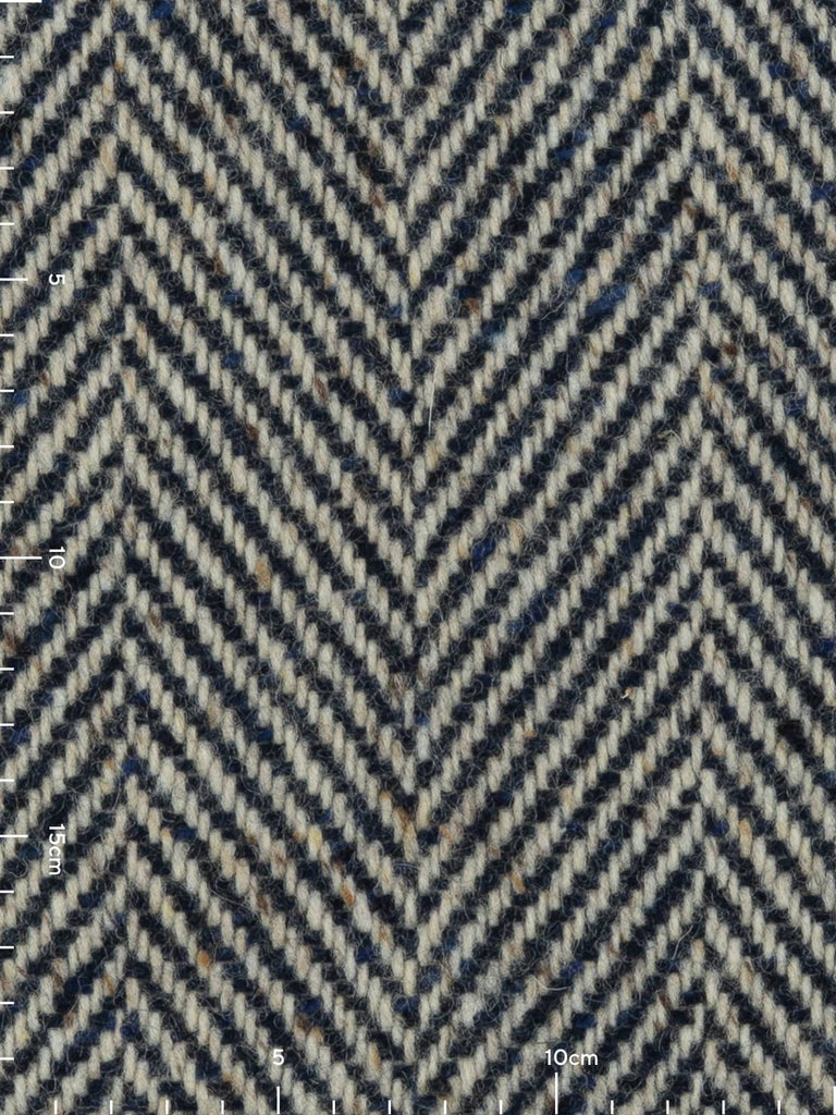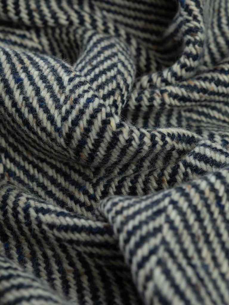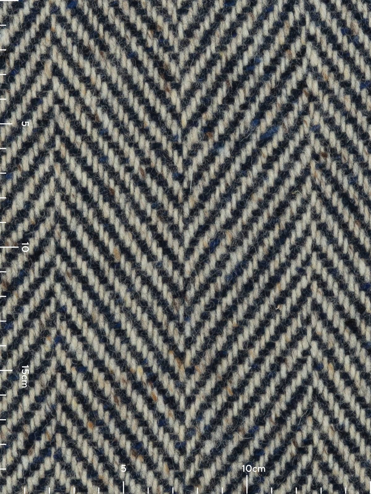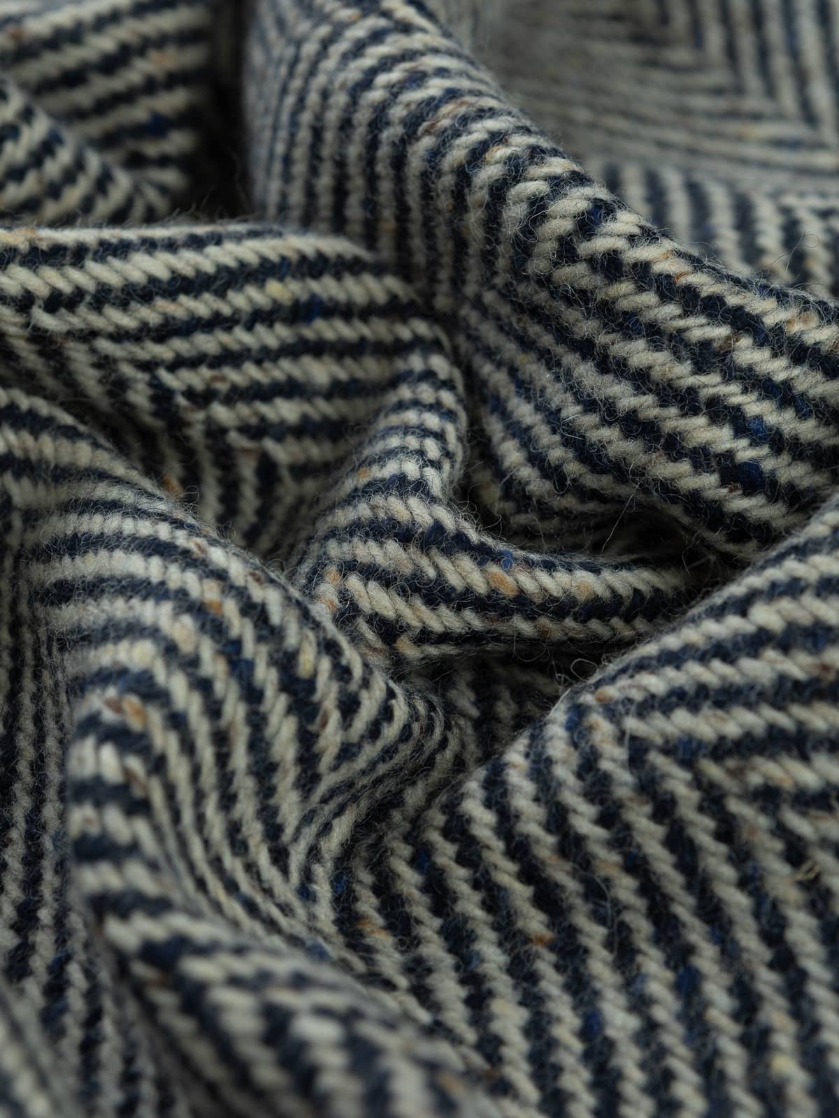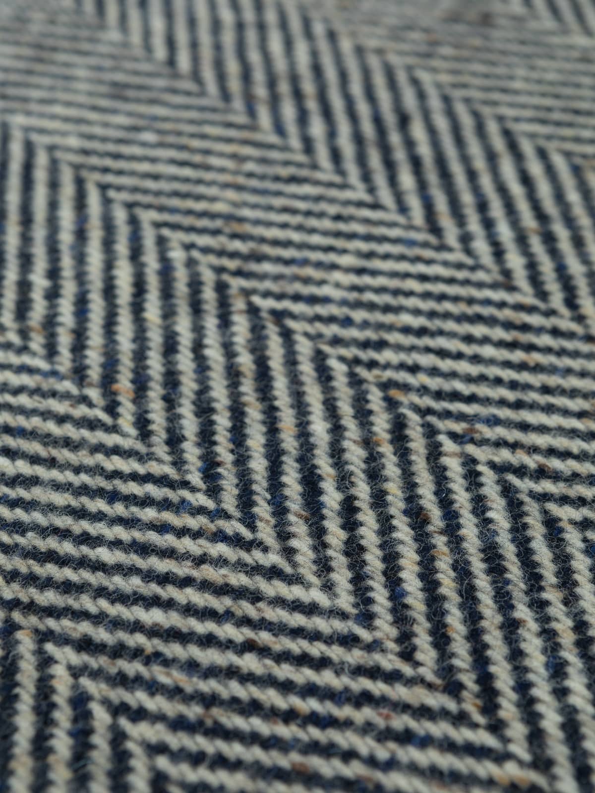 Design: This classic Jumbo Herringbone showcases chunky yarns of natural white with Donegal flecks through the warp and Nautical Navy, contrasting perfectly to create the characteristic chevrons of the herringbone weave.