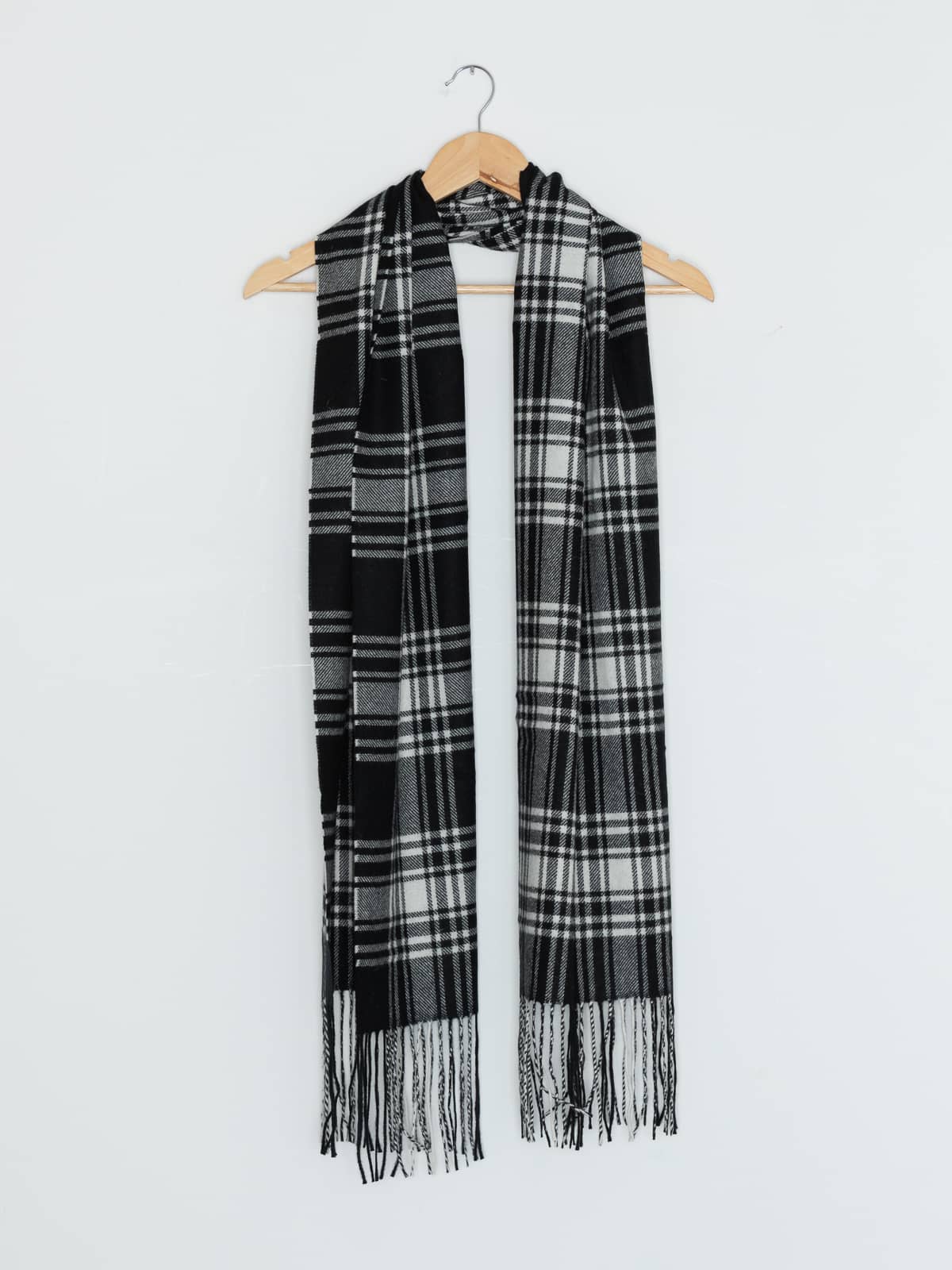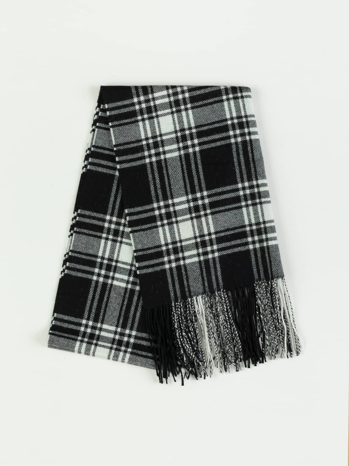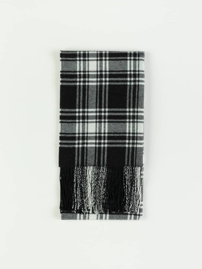 This classic black and white check recalls the bold charm of traditional humbug sweets, striking and unmistakably timeless. Soft, warm and featherlight, it adds confident contrast to any winter outfit, from tailored coats to relaxed knits.