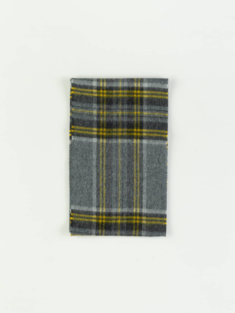 This heritage-woven infinity scarf blends a classic monochrome palette of mid-grey, black, and white with striking bands of vibrant bumble-bee yellow for a bold yet timeless look. Crafted from brushed Merino wool and stitched into a soft, tweedy loop with a smooth overlocked and topstitched seam, it slips on easily and twists into secure, cosy layers that stay put, your perfect pop of colour and warmth through the winter.