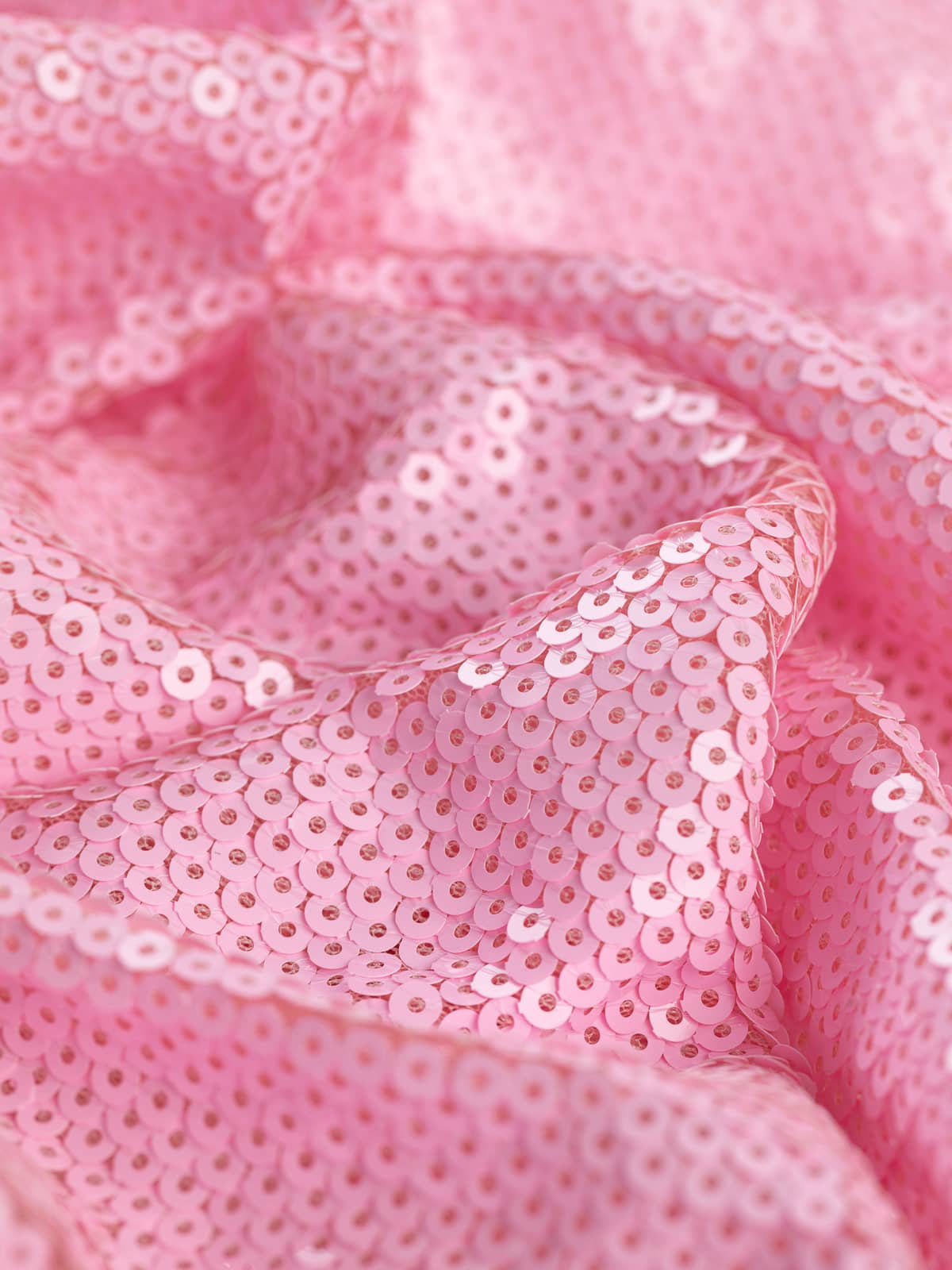 Design: The 4mm circular gloss pink sequins are stitched in vertical, slightly overlapping rows to form an opulent, encrusted, shimmering surface.