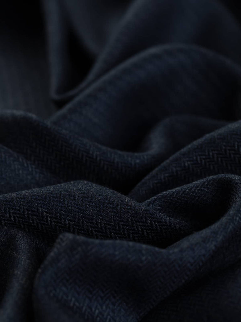 The Royal Sapphire fabric, when twisted, reveals its deep jewel-toned blue, creating a visual flow of rich, fluid texture. The weighty drape and slight sheen of the viscose-nylon blend adds elegance, while its four-way stretch ensures comfort and flexibility. This fabric is perfect for pieces that require soft movement and fullness, like Grecian-style dresses and draped tops.
