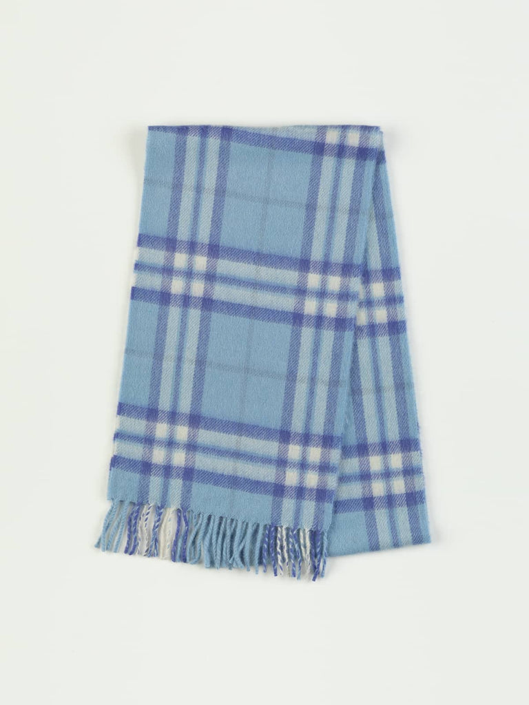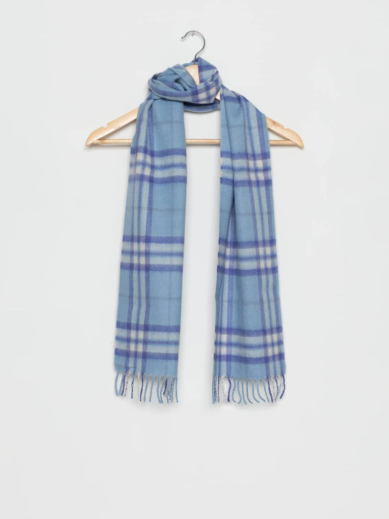 Small Pure Cashmere Scarf - Periwinkle Blue Check