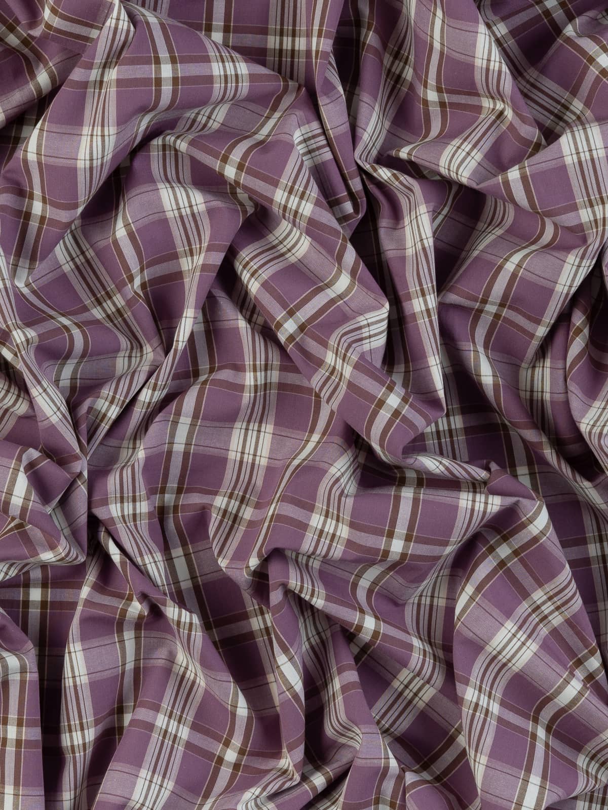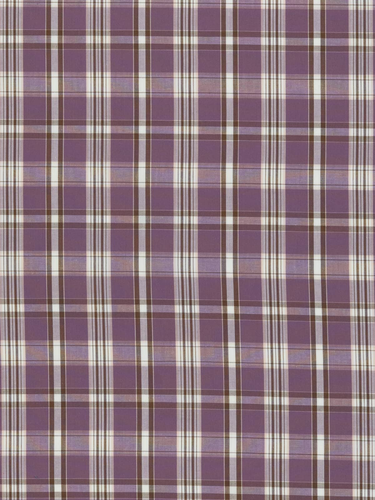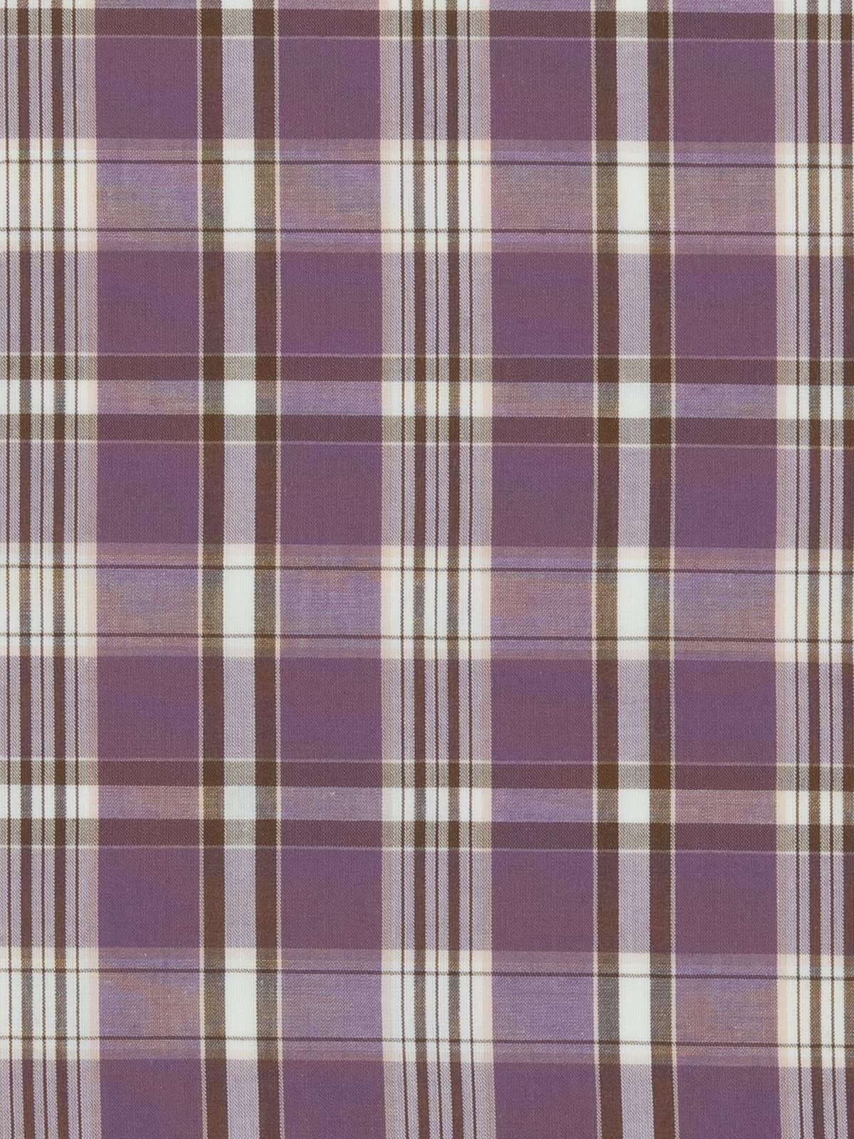 Shades: This madras-style, checked, shirt-weight, cotton fabric is woven with a complementary palette of chocolate brown and rich, purple, black-cherry mauve hues set amidst fresh white, the cream to the cake!