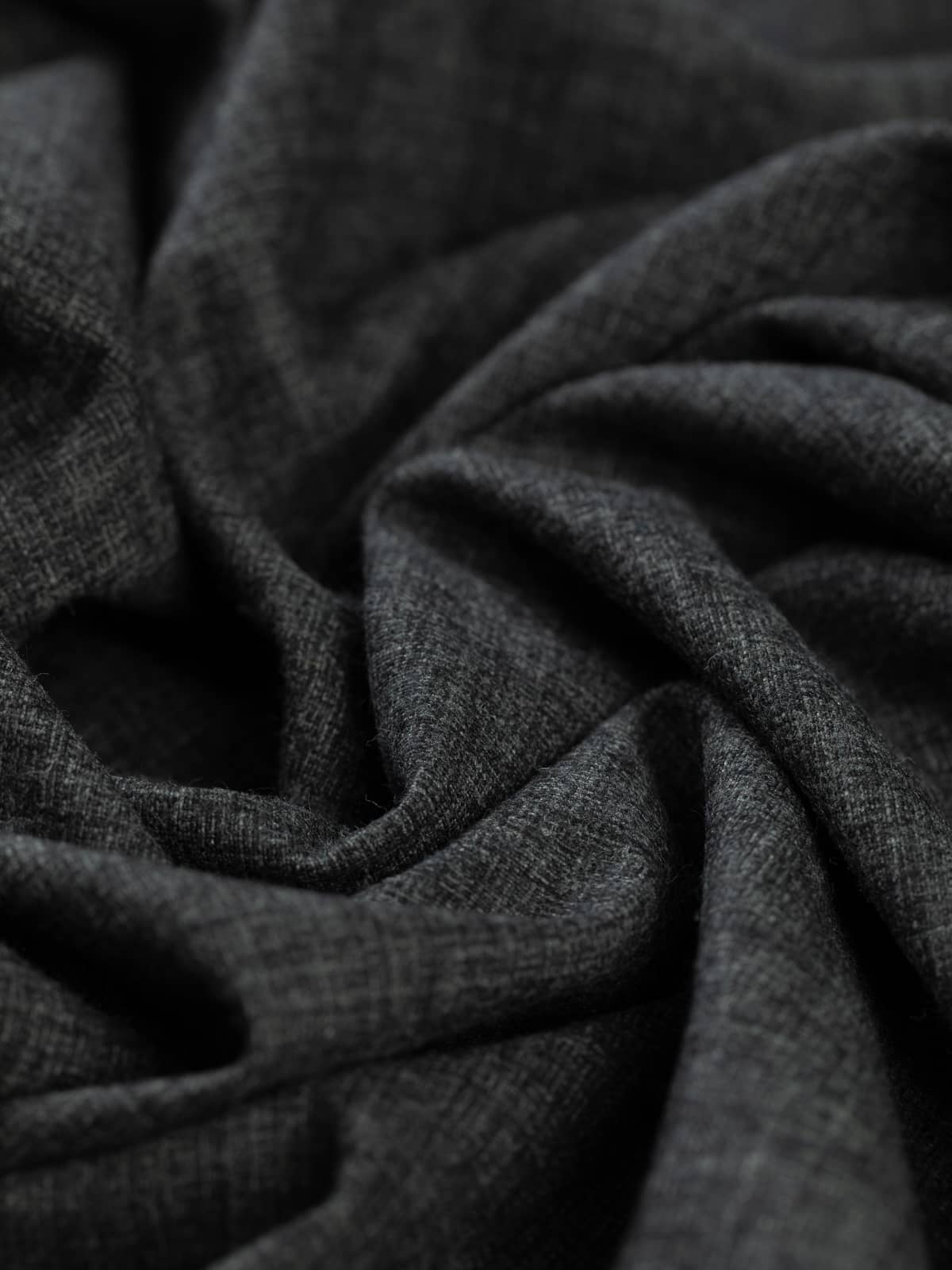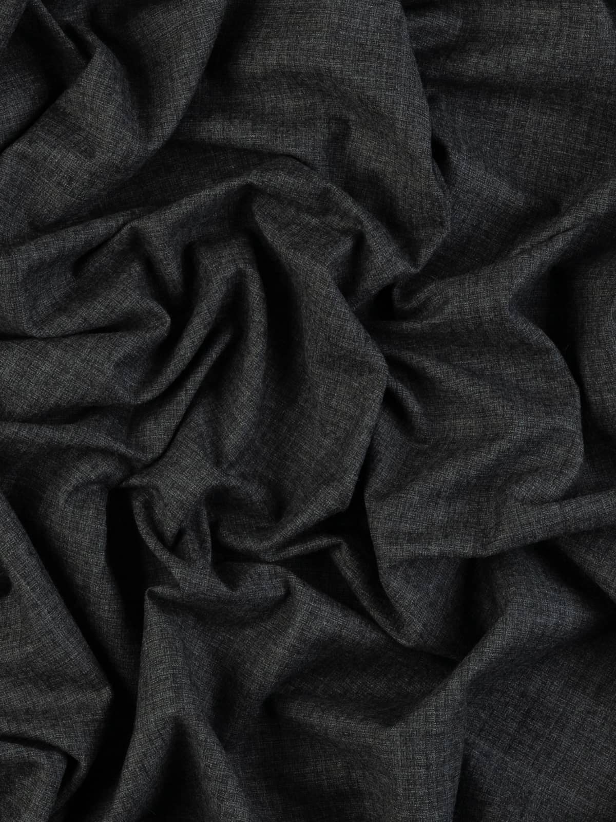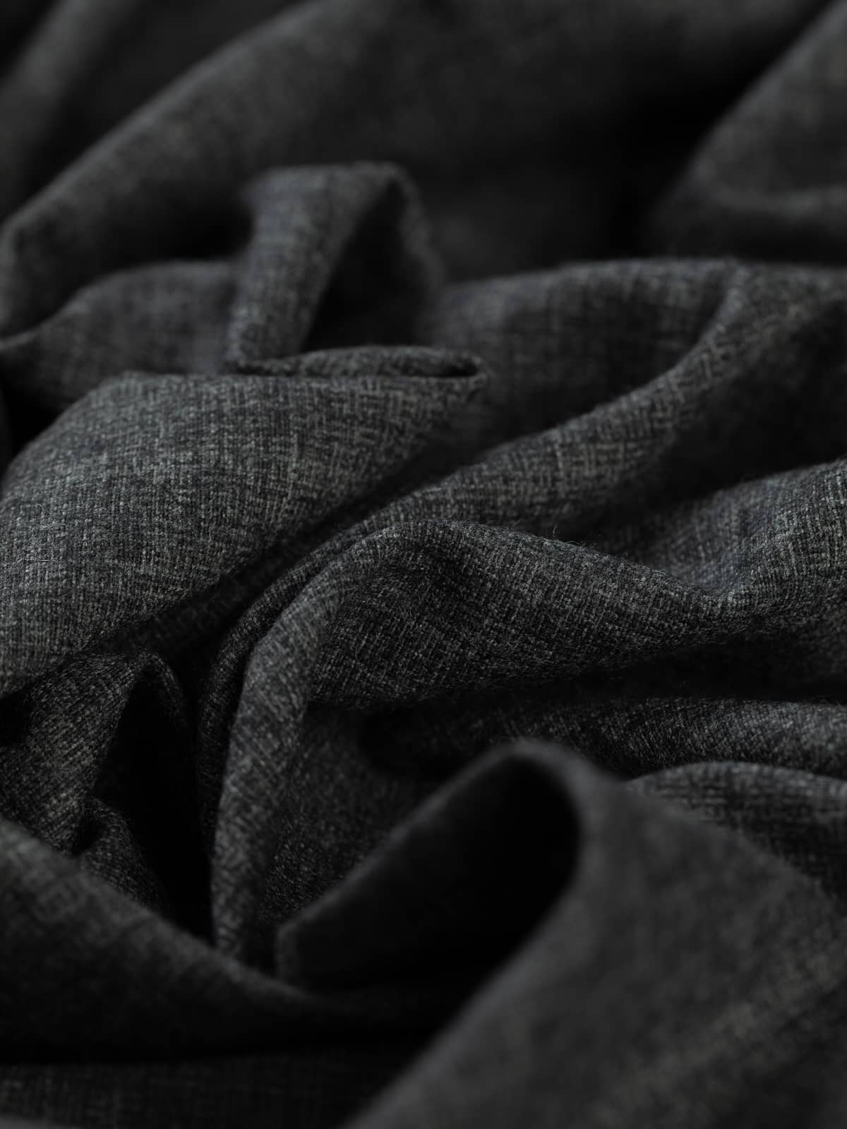 Shades: This superfine wool flannel is woven from a combination of black and marled smoke grey yarns. These subtle tonal variations create a sketch-like, striated appearance, giving the fabric a beautifully nuanced surface and an overall granite-inspired hue.