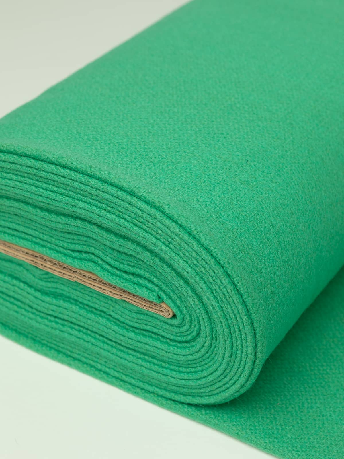 Design: This felted wool melton fabric is created using highly twisted, medium-gauge lambswool yarns, woven with a traditional twill weave that gives a characteristic diagonal line formation. Upon weaving, the fabric is then 'finished' and felted, creating a closely woven, dense appearance where the detail of the diagonal twill lines is obscured with a pleasing, washed, and lightly brushed finish.