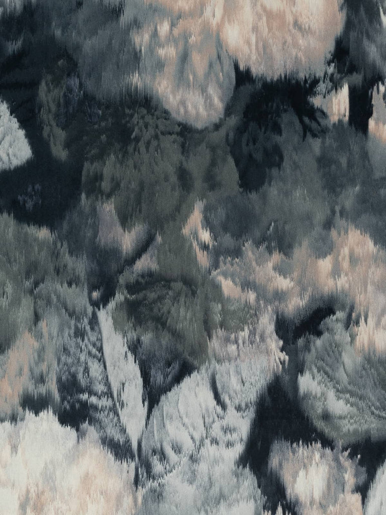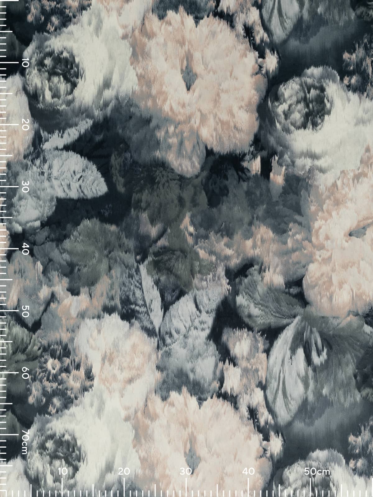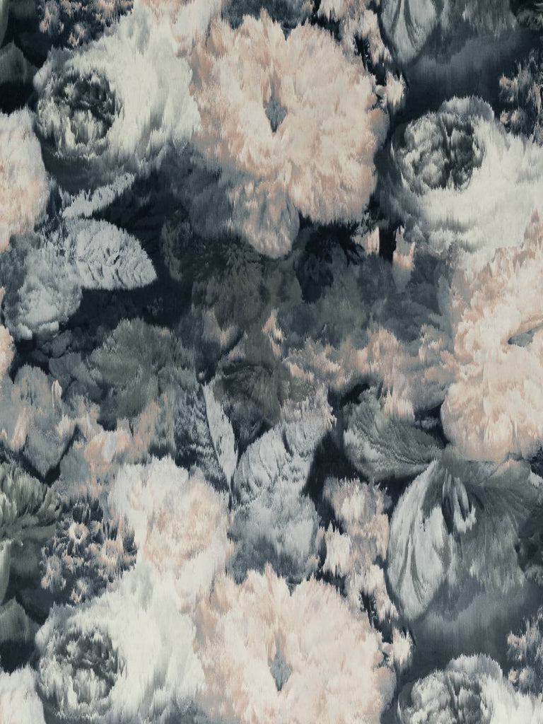 Artistic Botanical Haze (Greyscale Blush) is a maximalist design, packed with an exuberance of frothy antique-style florals in a painterly yet obscured (almost dry brushed or scumbled-smudged) style.