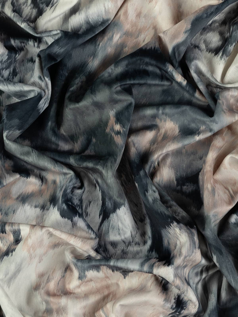 A subtle greyscale palette of differing tones of grey is accentuated and elevated with the addition of pale pink-bisque tones akin to a subtle blush. Team this Greyscale Blush creation with similarly hued solid velvets for a subtle coordinated style.