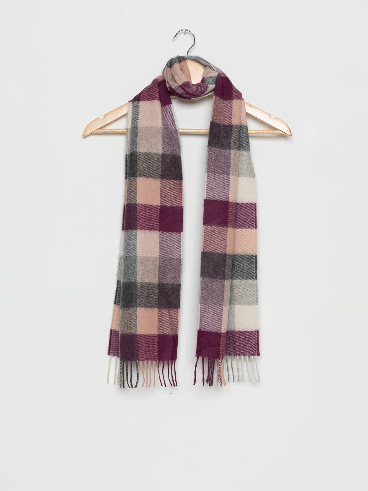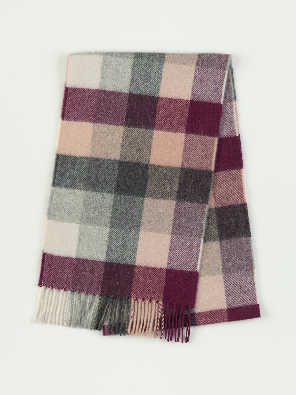 Blending rich plum, rose blush, and misty grey, this scarf evokes the quiet charm of Yorkshire hedgerows touched by early autumn frost. The deep berry tones bring warmth and depth, softened by the calm neutrality of stone and cream. Its luxuriously smooth cashmere weave offers a comforting embrace, elegant, timeless, and inspired by the gentle hues of the northern countryside.