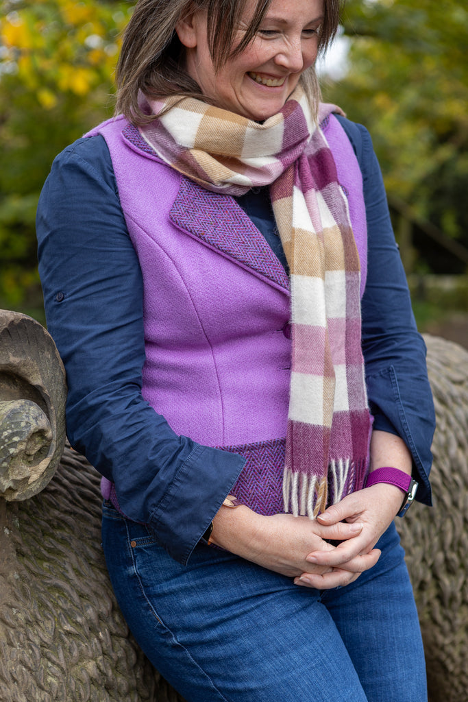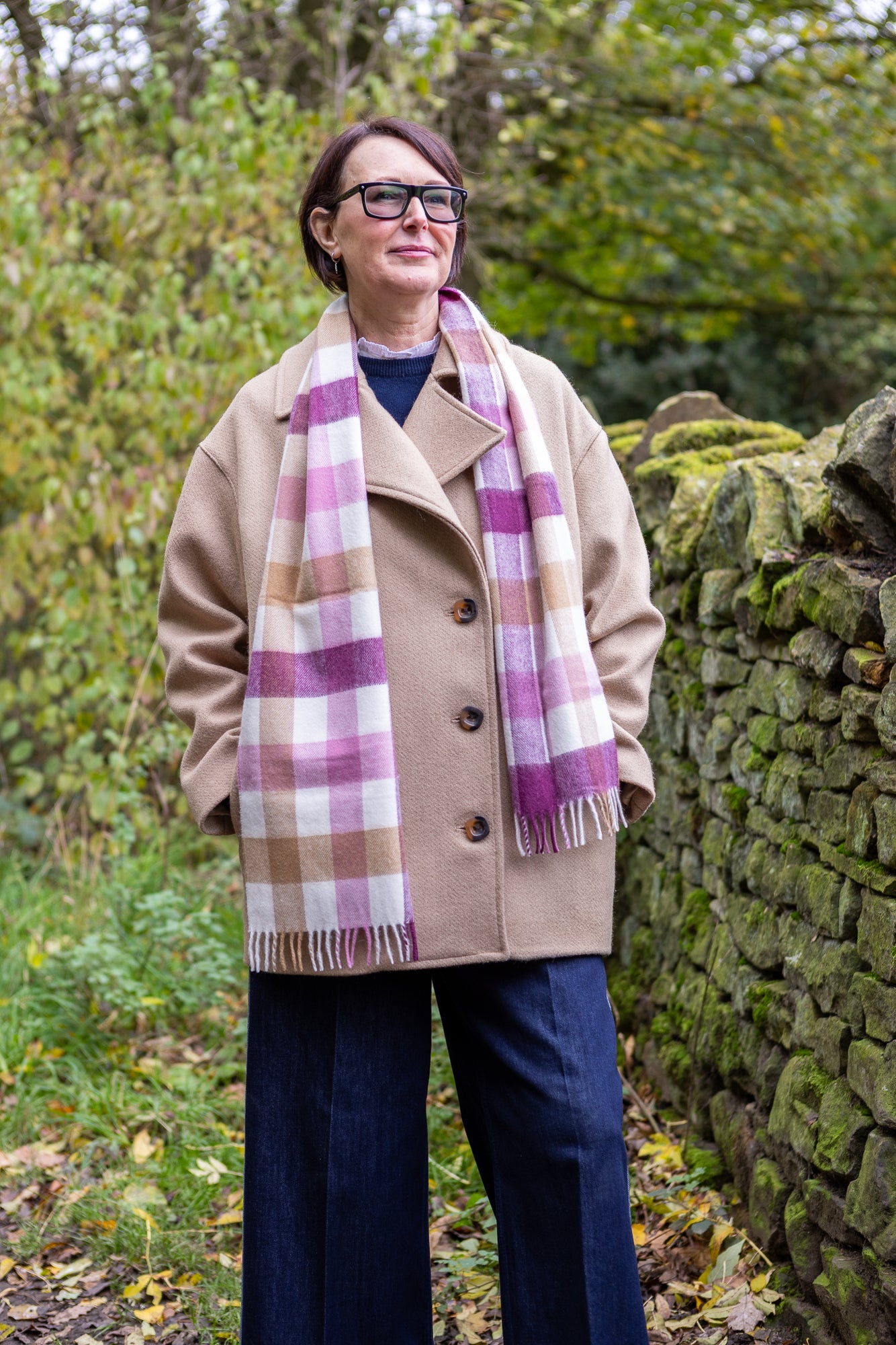 A rich blend of soft rose, deep plum, and warm bracken tones, this scarf mirrors the heather-strewn moors in late summer light. Its colours shift gently between warmth and calm, creating a look that’s both romantic and refined. Crafted from the finest cashmere, it offers a cocoon of softness, a piece that carries the quiet beauty of the Yorkshire hills wherever you go.
