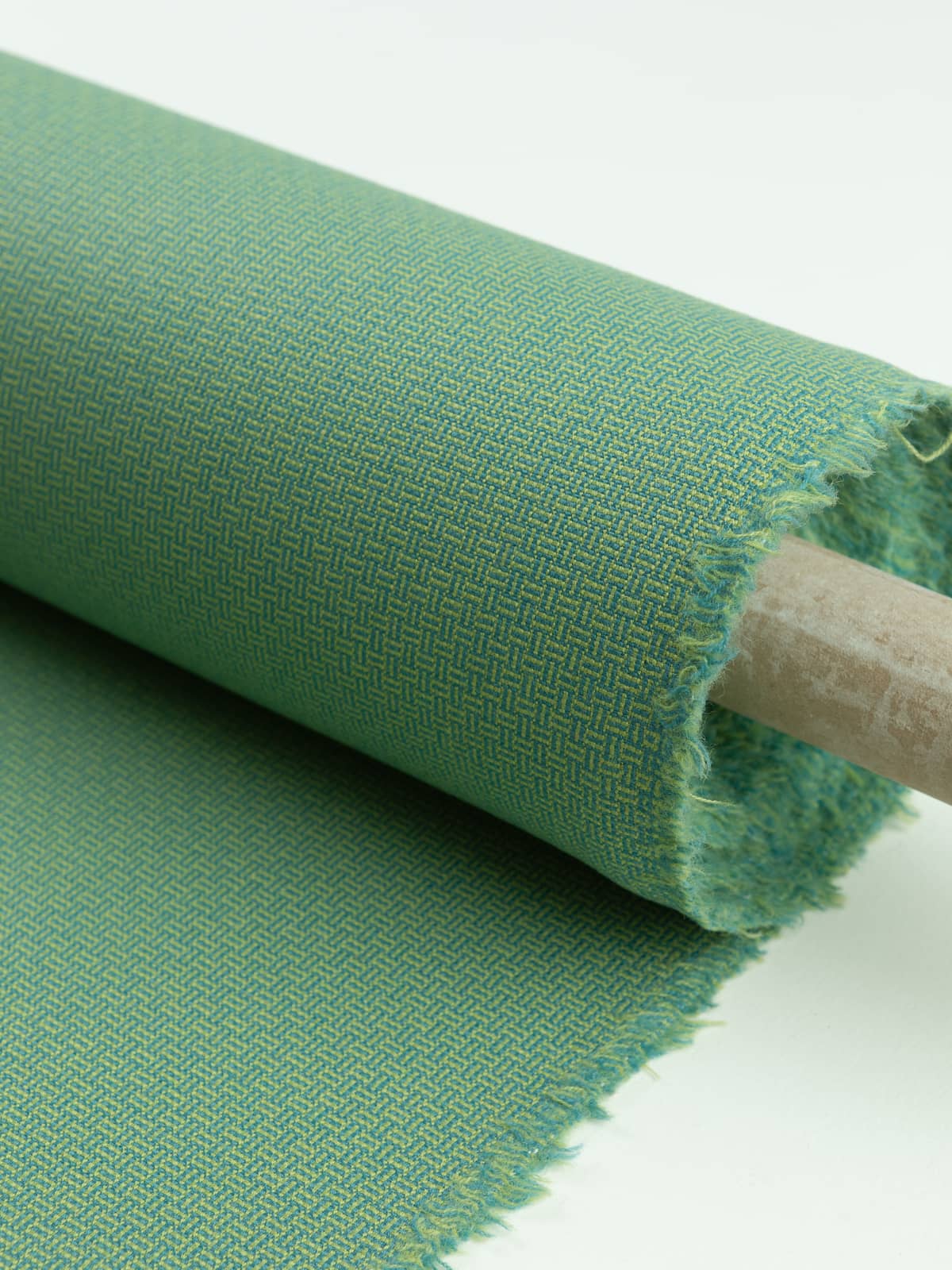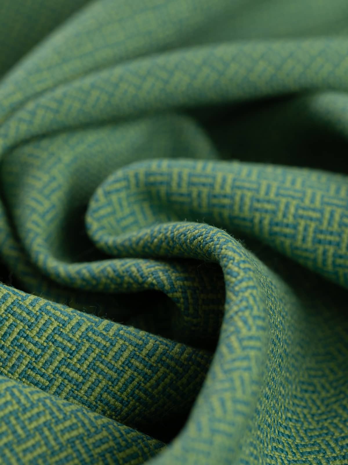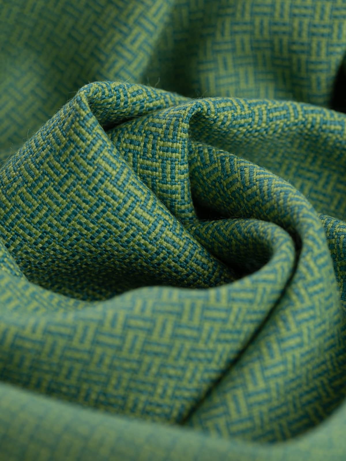 Shade: A fresh bi-colour palette, enlivened with glaucous blue green and new shoots spring green akin to heat-loving herbs. The deeper verdigris hue creates depth alongside the spring green, offering you the choice to accessorise with either tone.