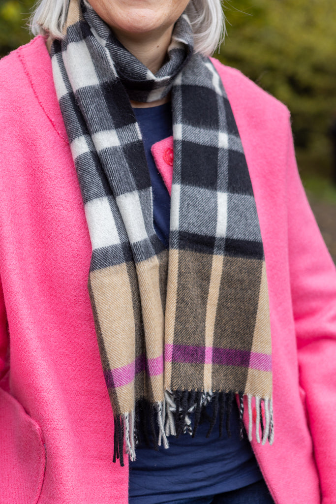 Pure Cashmere Scarf - Wild Thistle Check - Fabworks Online