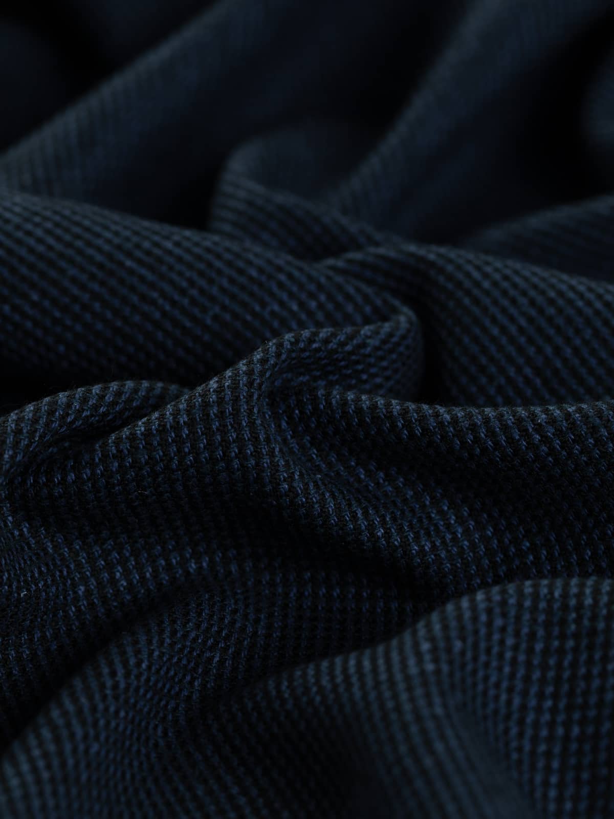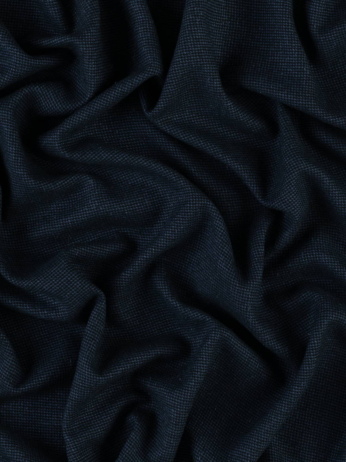 This all wool fabric boast a rich palette of denim blue and black in a micro four pointed star design, which gives an overall deep navy appearance from a distance, making a great alternative to a plain flat navy flannel.